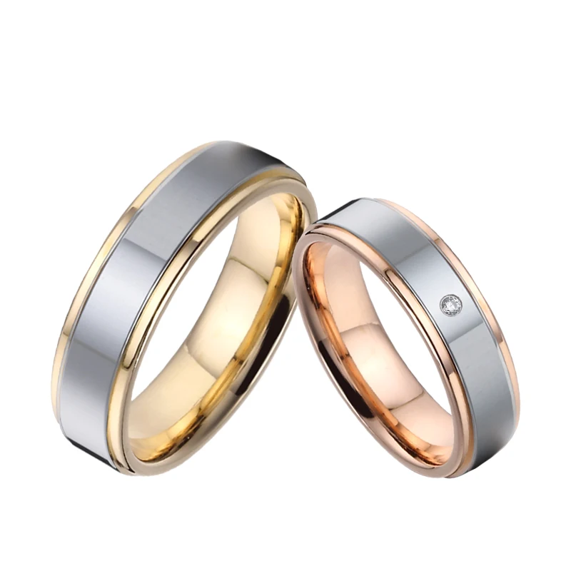 Обручальные кольца для мужчин и женщин, кольца для влюбленных, 14 к, с покрытием из розового золота, титановые украшения, для свадьбы, юбилея, пары
