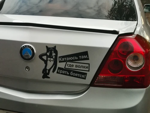Стикеры (Автомобильные товары), Наклейки на машину из виниловой пленки. "КАТАЮСЬ ТАМ, ГДЕ ВОЛКИ СРАТЬ БОЯТСЯ"
