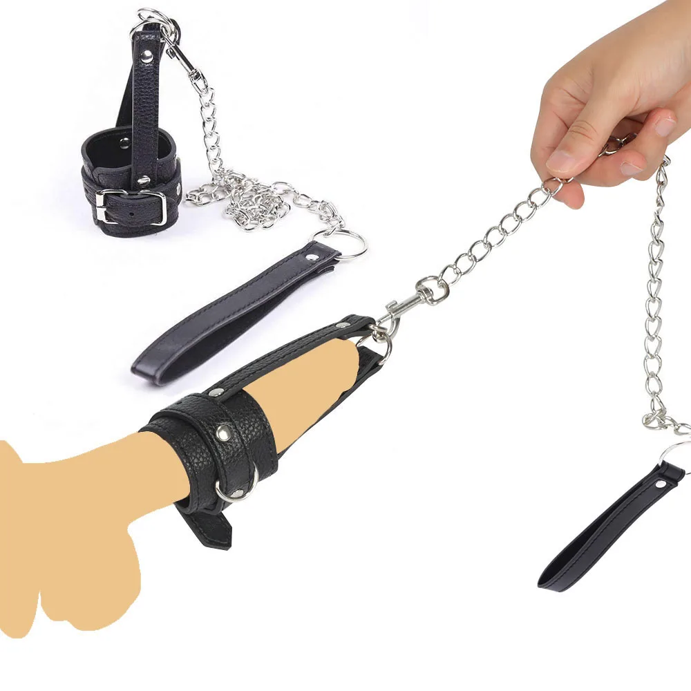 Кожаная Петля для пениса с ремешком на цепочке, свинцовый поводок, ...