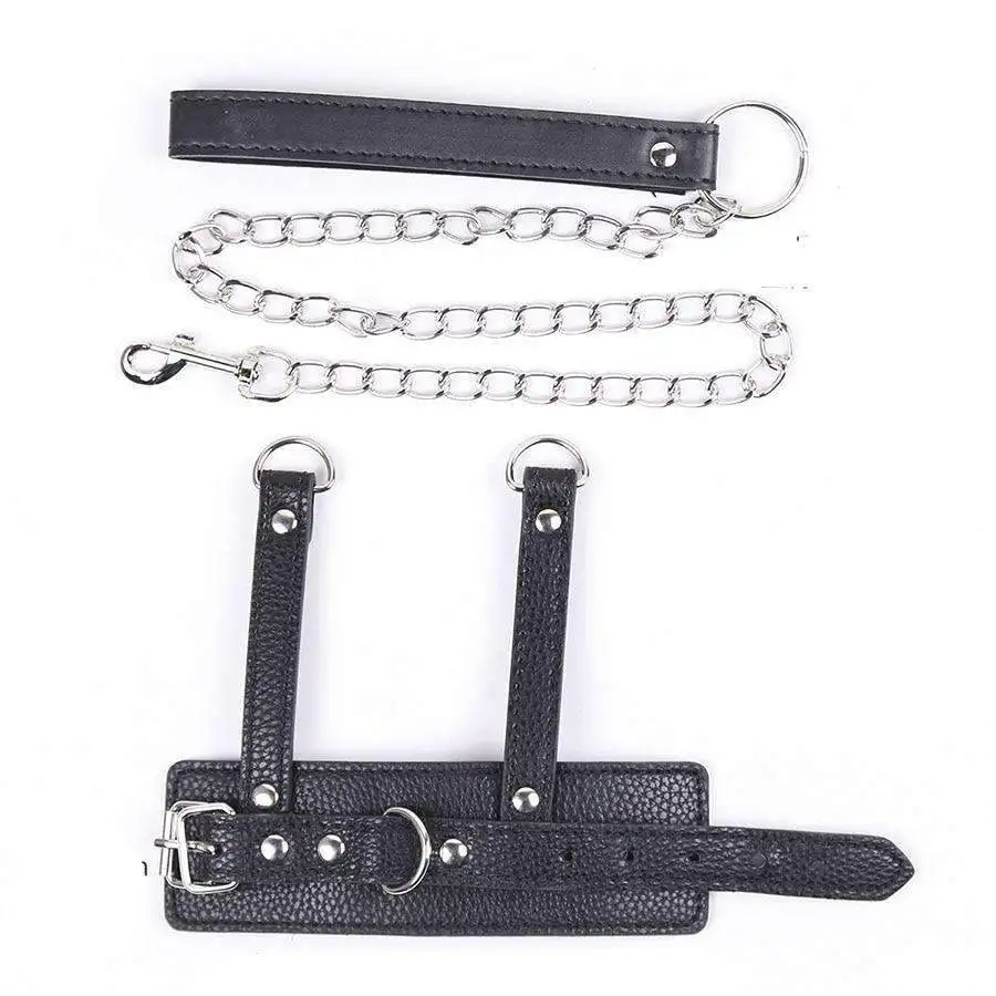 TypeLeather Penis Ring Scrotum Sleeve With Metal Leashes