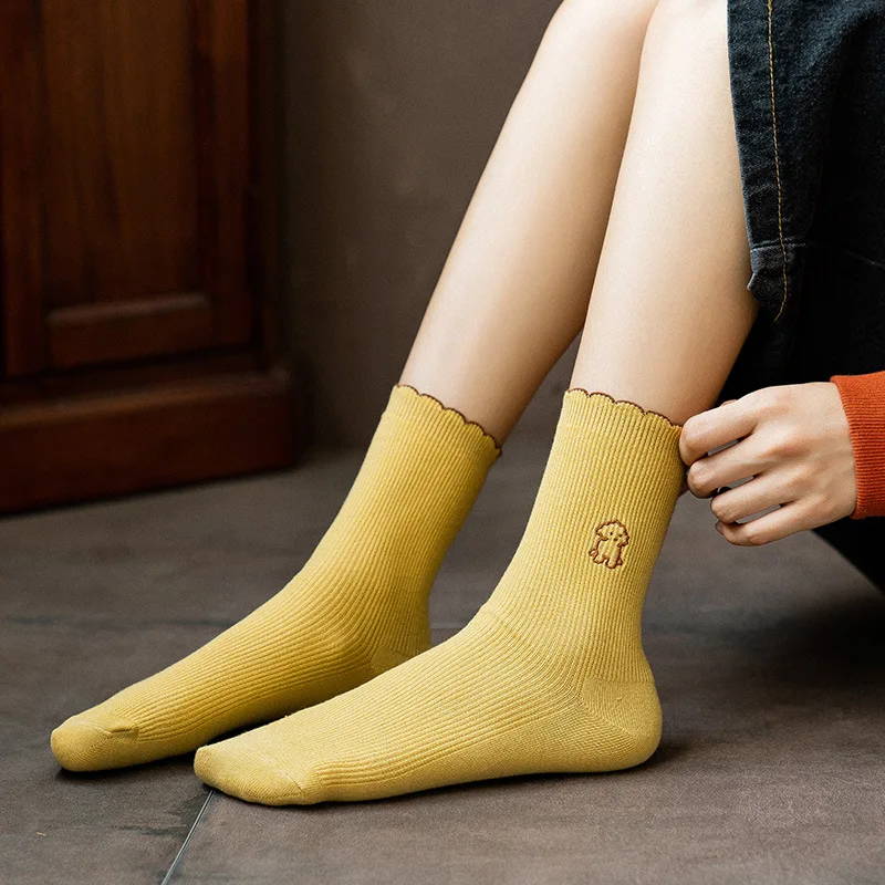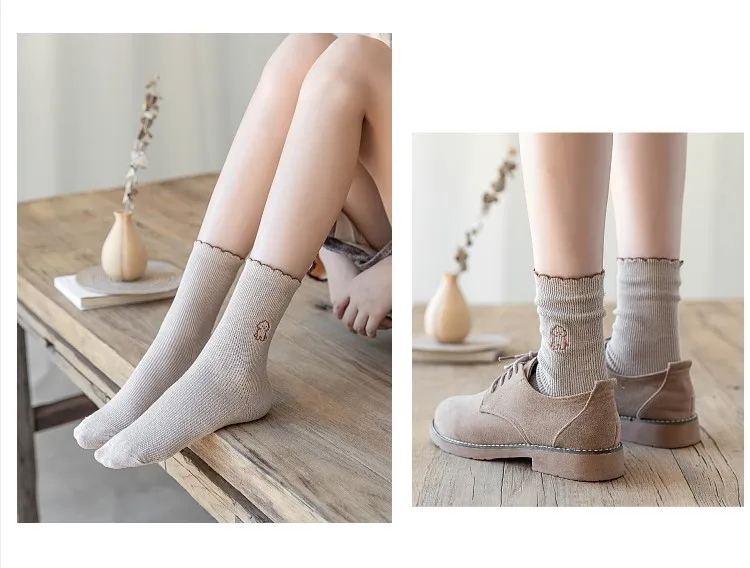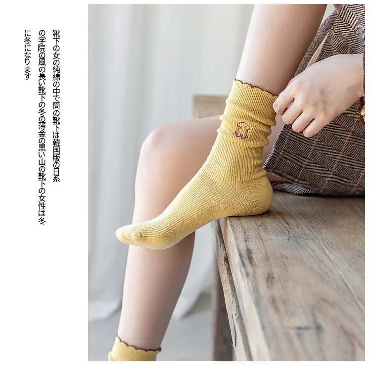 Носки женские с мультяшным рисунком, милые уютные с рюшами и принтом животных, кавайные носки в стиле Харадзюку для пар