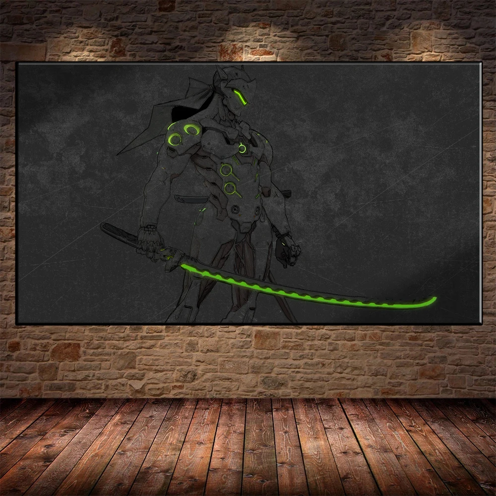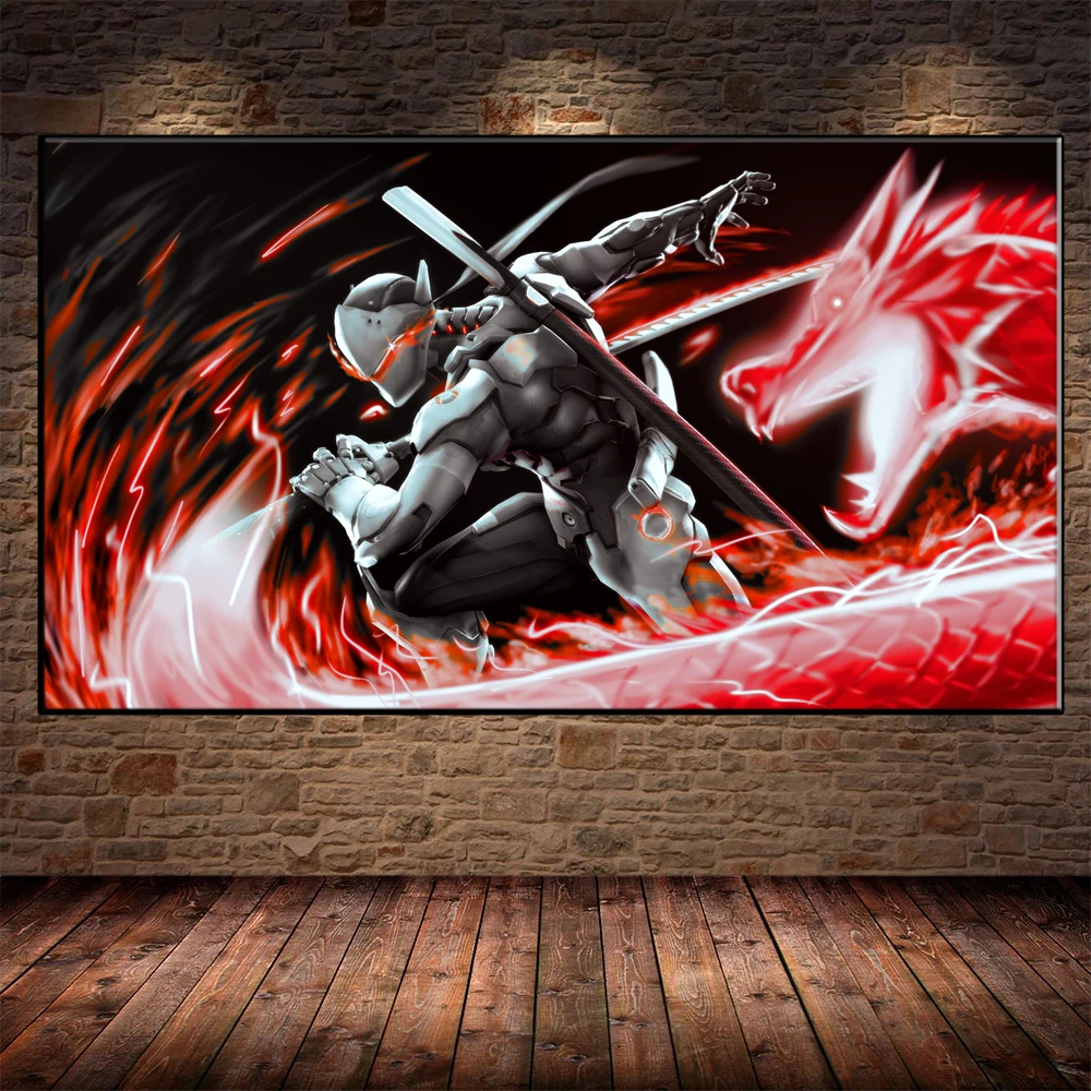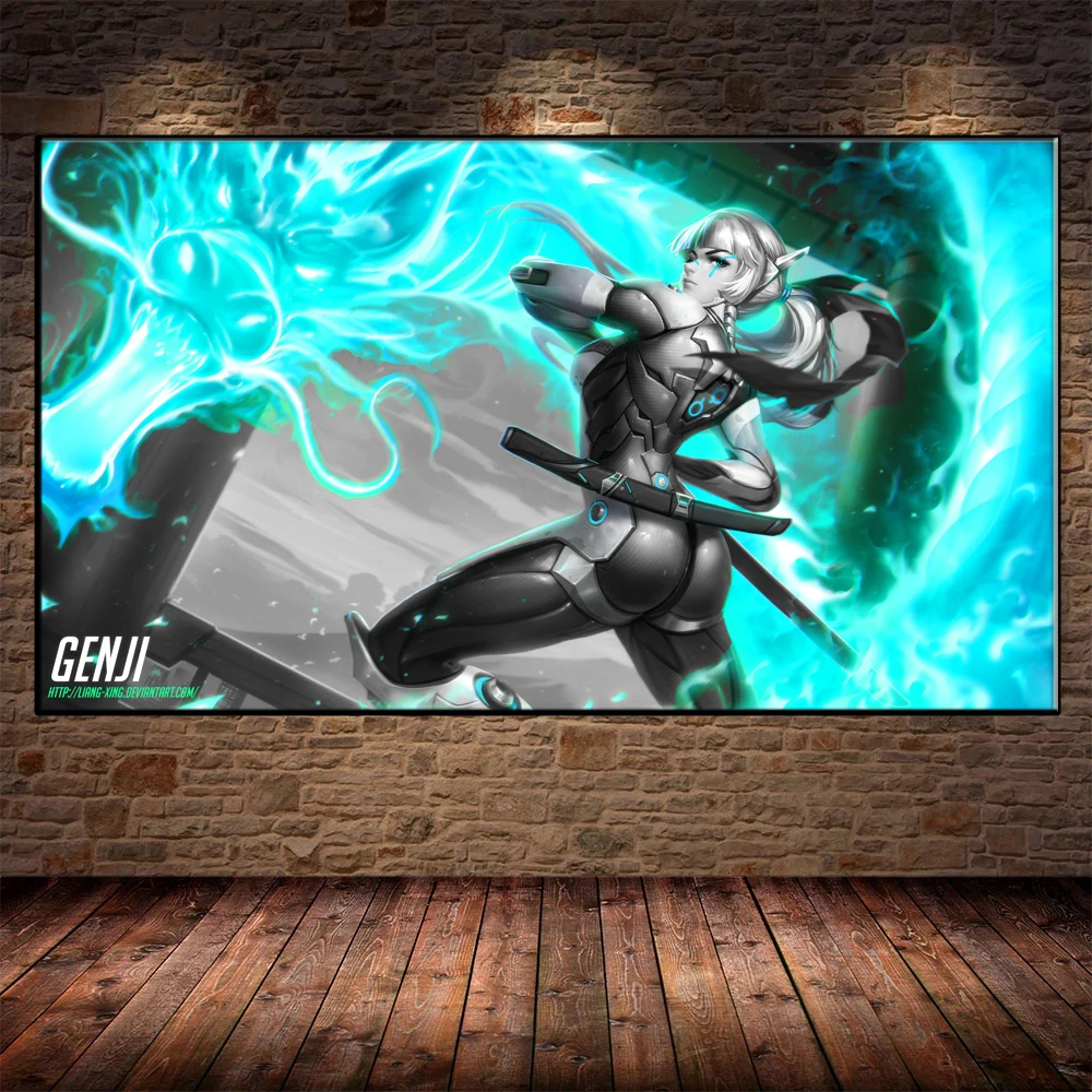 Игровой плакат Genji VS Hanzo R, художественные холщовые плакаты, игровые обои, роспись в гостиной, украшение для спальни