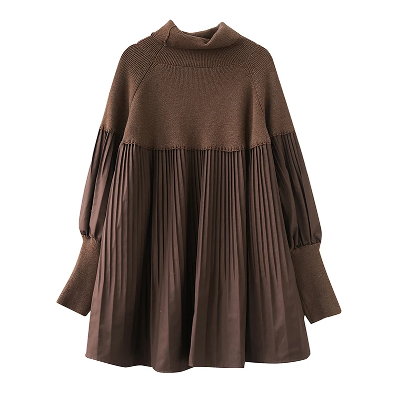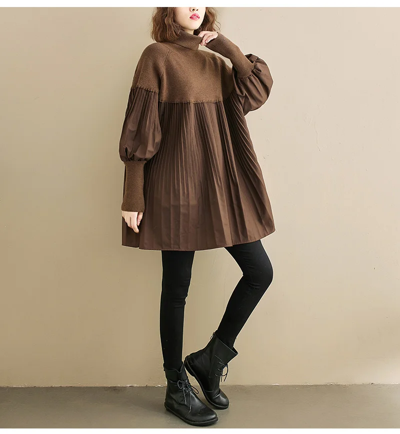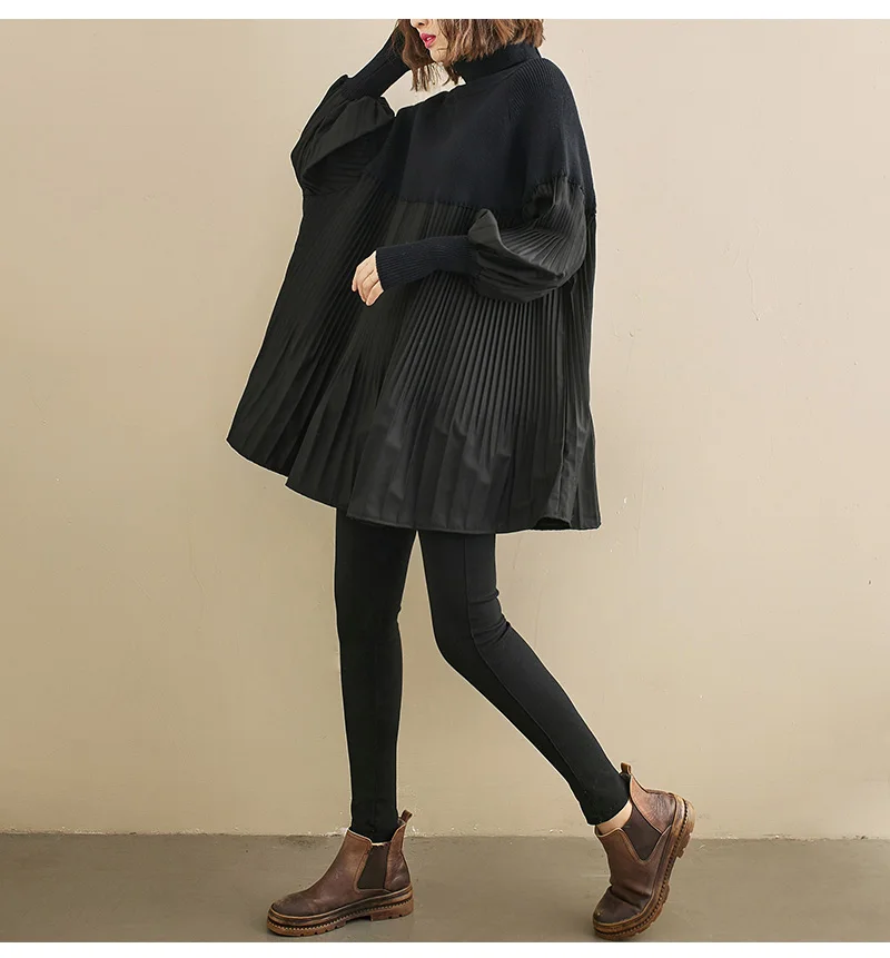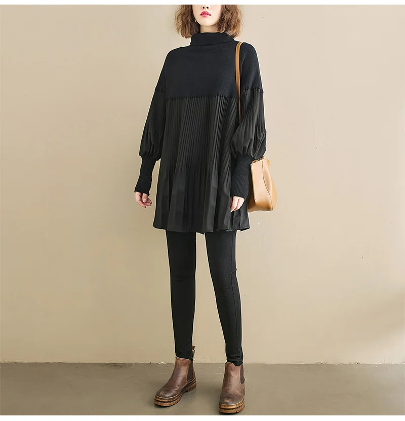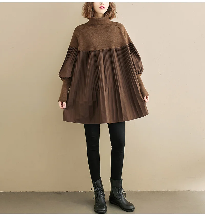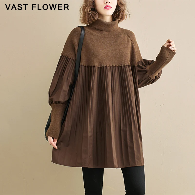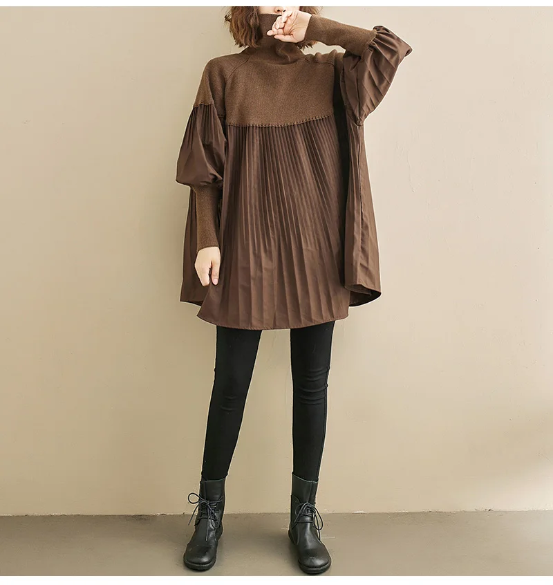 Женский плиссированный вязаный свитер-водолазка, Свободный пуловер с длинным рукавом, большие размеры, зима 2021