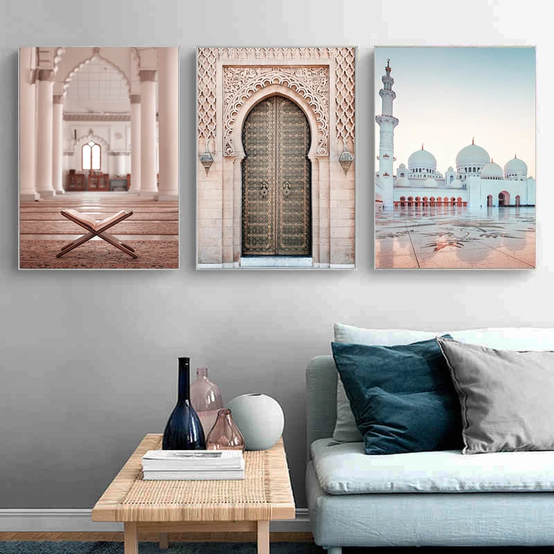 Винтажный постер исламских ворот, мечеть, архитектура, дверь, холст...