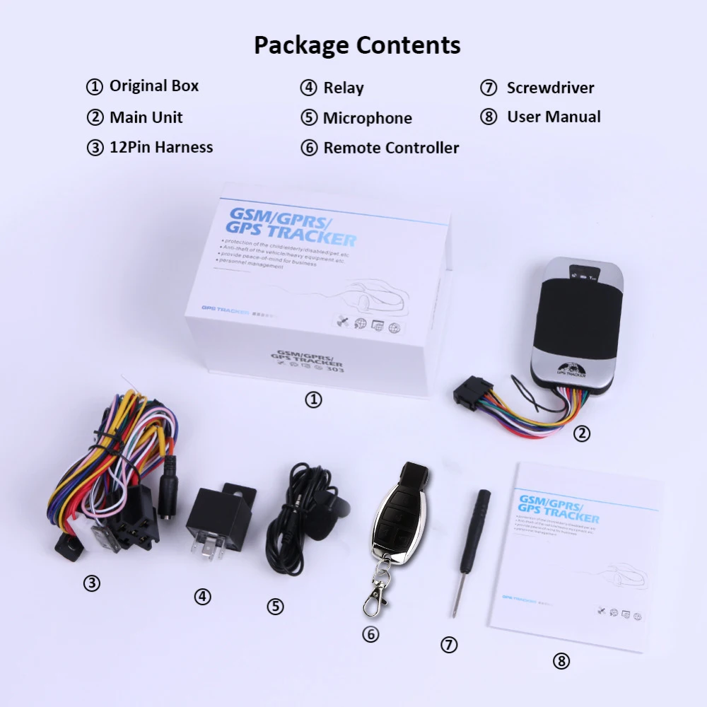 GPS 303G автомобильный GPS-трекер GSM GPS-локатор Coban TK303G водонепроницаемый IP66 пульт дистанционного управления отключением двигателя Geofence бесплатное веб-приложение