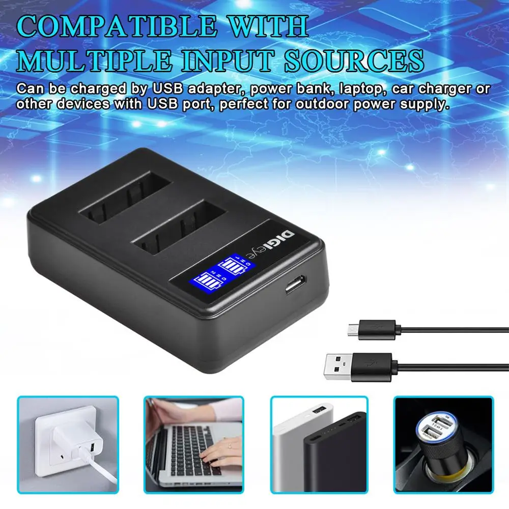 Благодаря входу micro-USB вы можете заряжать аккумулятор с помощью настенного зарядного устройства, автомобильного зарядного устройства и внешнего аккумулятора. Портативный размер зарядного устройства легко носить с собой во время путешествия, не нужно беспокоиться о коротком заряде.