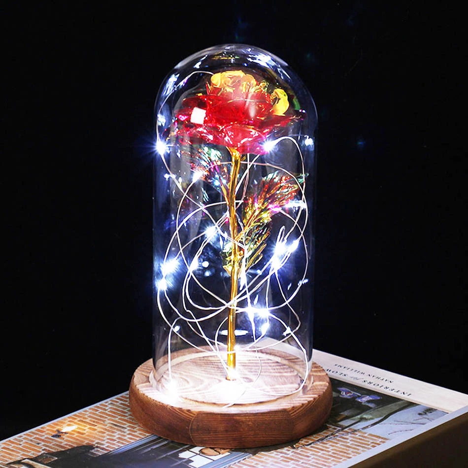 Galaxy Rose Flower 24K позолоченная Фольга Золотой Розовый креативный Золотой Радуга Красавица и Чудовище Роза подарок на день Святого Валентина свадебное украшение