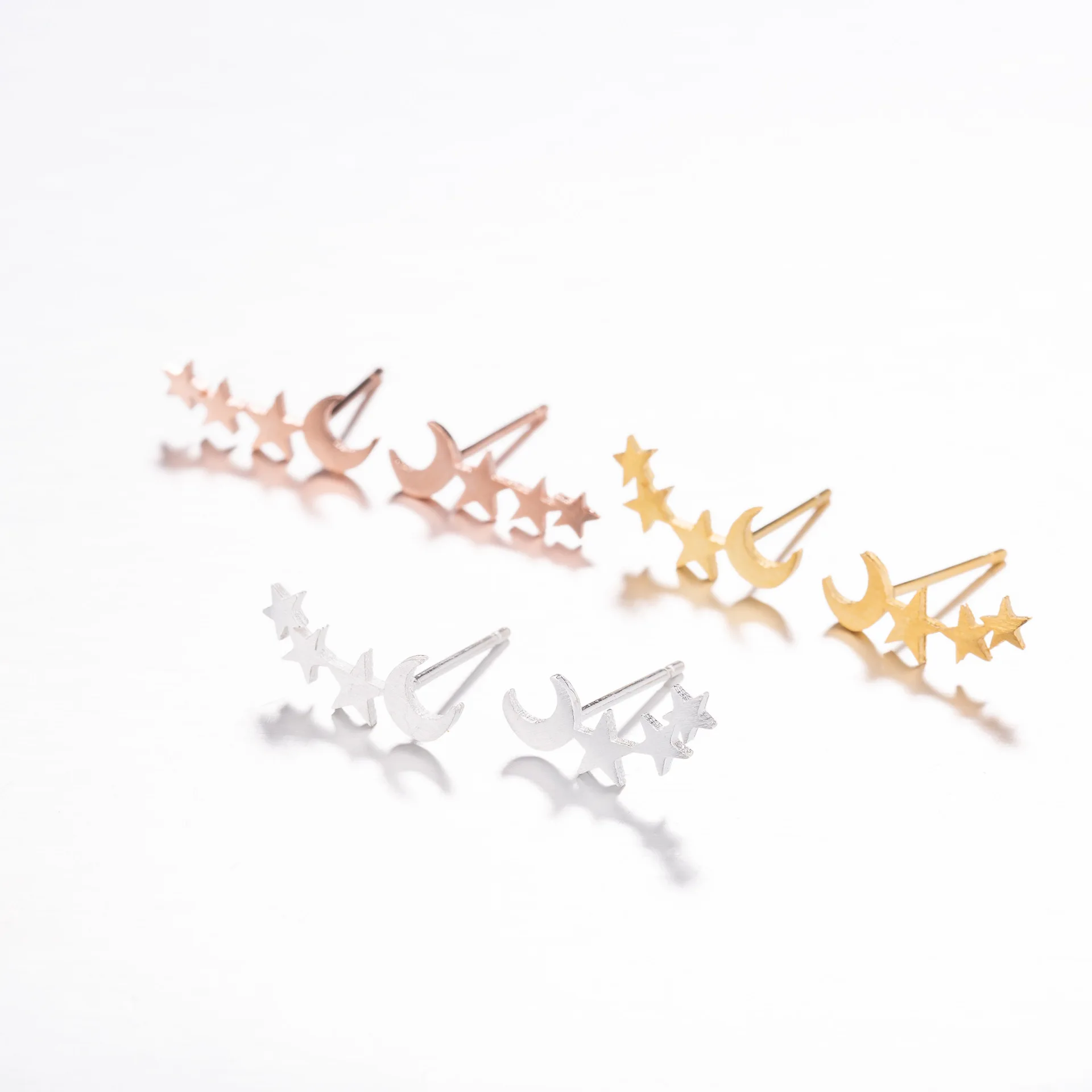 Луна, Звезды уха альпинист крошечная звезда луна, серьги со шпилькой, для Для женщин повседневной подросток День матери звездного неба на день рождения, подарок, ювелирное изделие Earrring