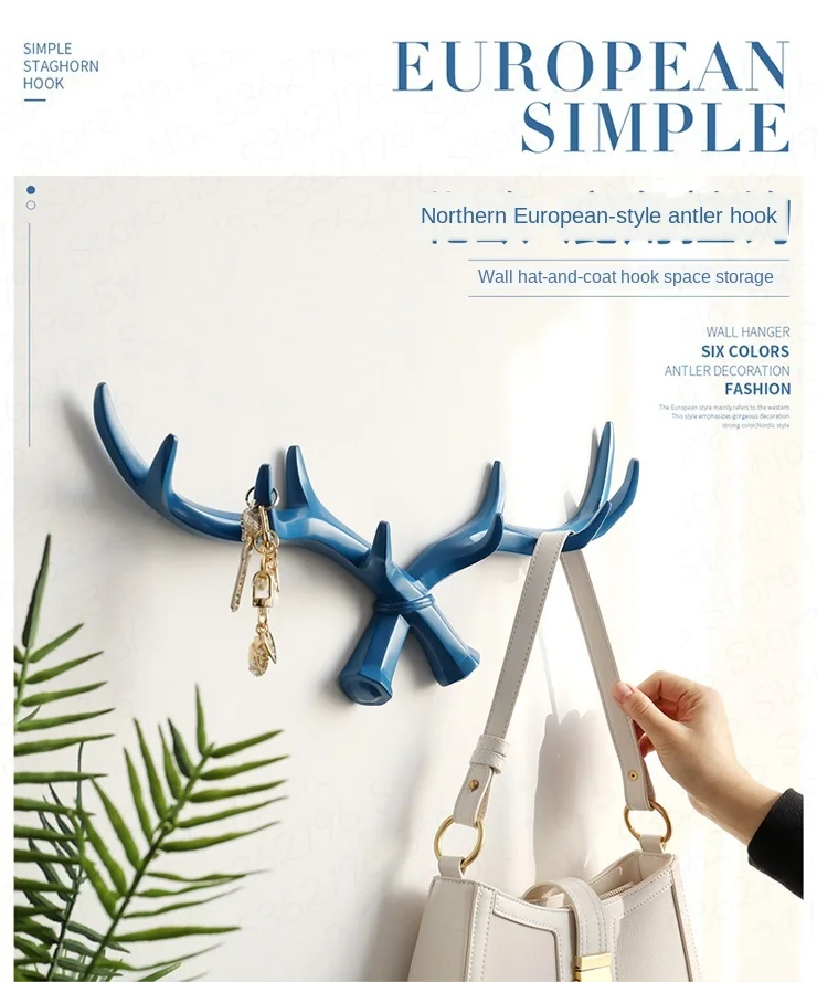 Вешалка из смолы с рогом оленя в скандинавском стиле, настенная вешалка с крючками для ключей, шляп, пальто, домашняя декоративная вешалка для одежды, крючки для полотенца