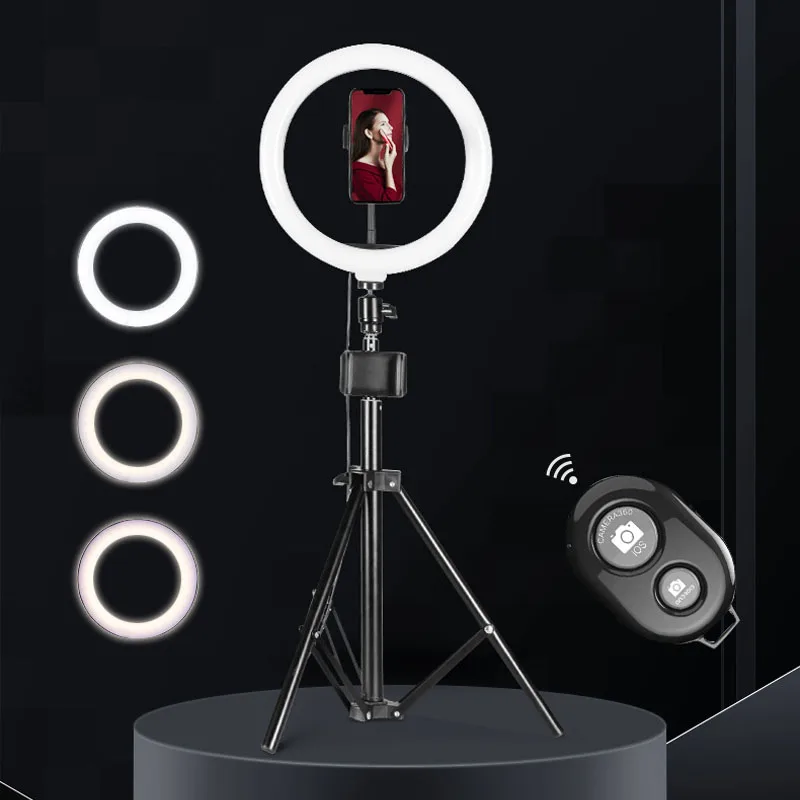 Светодиодный ная кольцесветильник лампа для селфи, лампа-кольцо с приглушенным светом для камеры телефона, 10 дюймов26 см, пульт дистанционного управления Bluetooth, тренога с затвором для макияжа, видео и Live VK