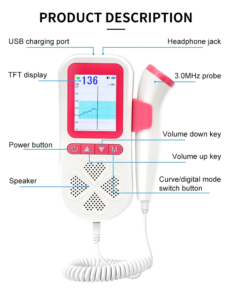Заряжаемый фетальный допплер для беременных 3,0 МГц Улучшенный зонд для беременных допплер фетальный ребенок монитор сердечного ритма USB зарядка бесплатная коробка