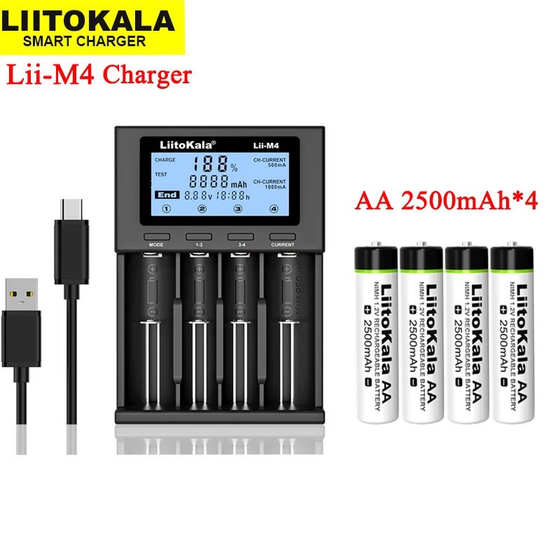 Новинка LiitoKala Lii-M4 18650 литий-ионная батарея умное зарядное устройство испытательная емкость + liitokala AA 1,2 V NiMH 2500mAh перезаряжаемые батареи