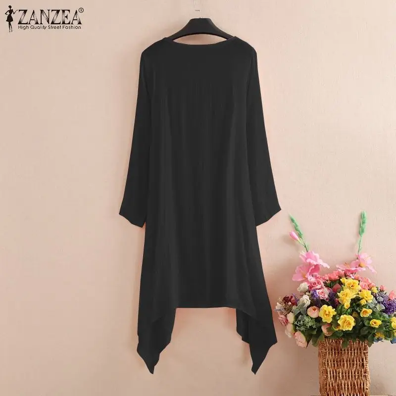 Длинное платье-рубашка ZANZEA, женское повседневное однотонное Длин...