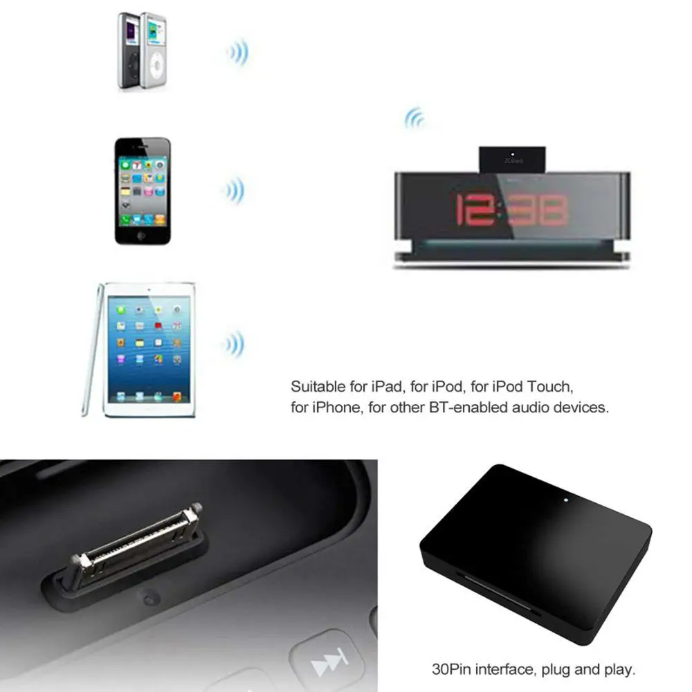 Внимание:1) В комплект поставки bluetooth 30 pin адаптерНе для использования в автомобиле, Для различных схем 30 контактной стыковки.