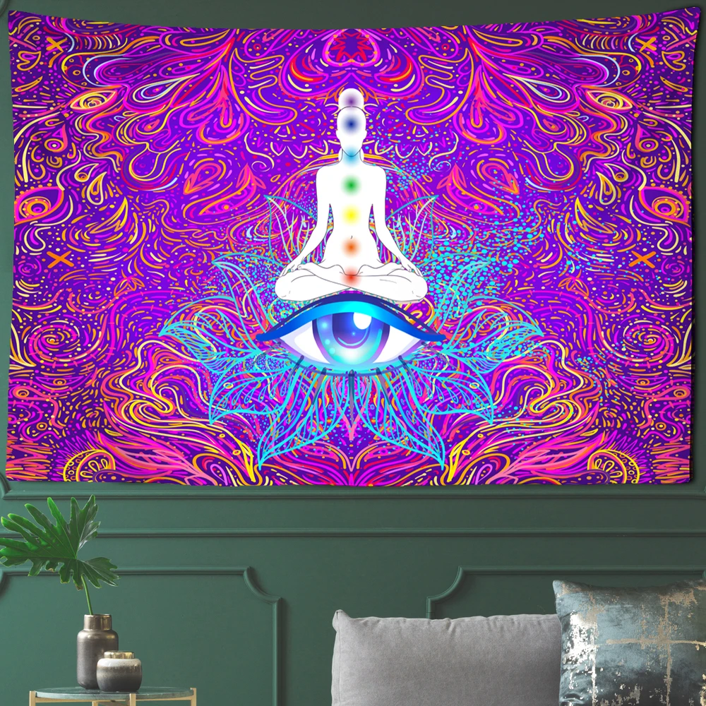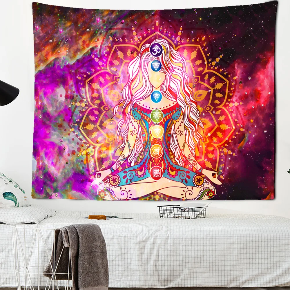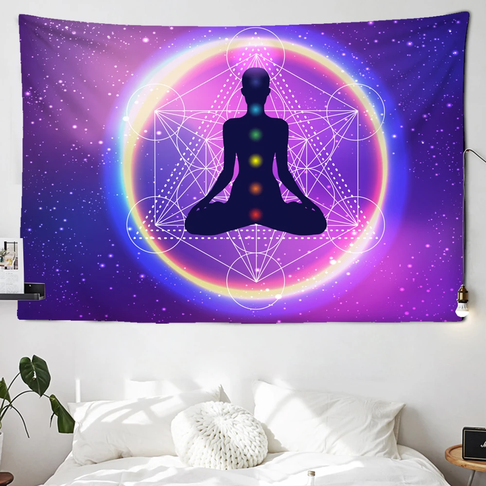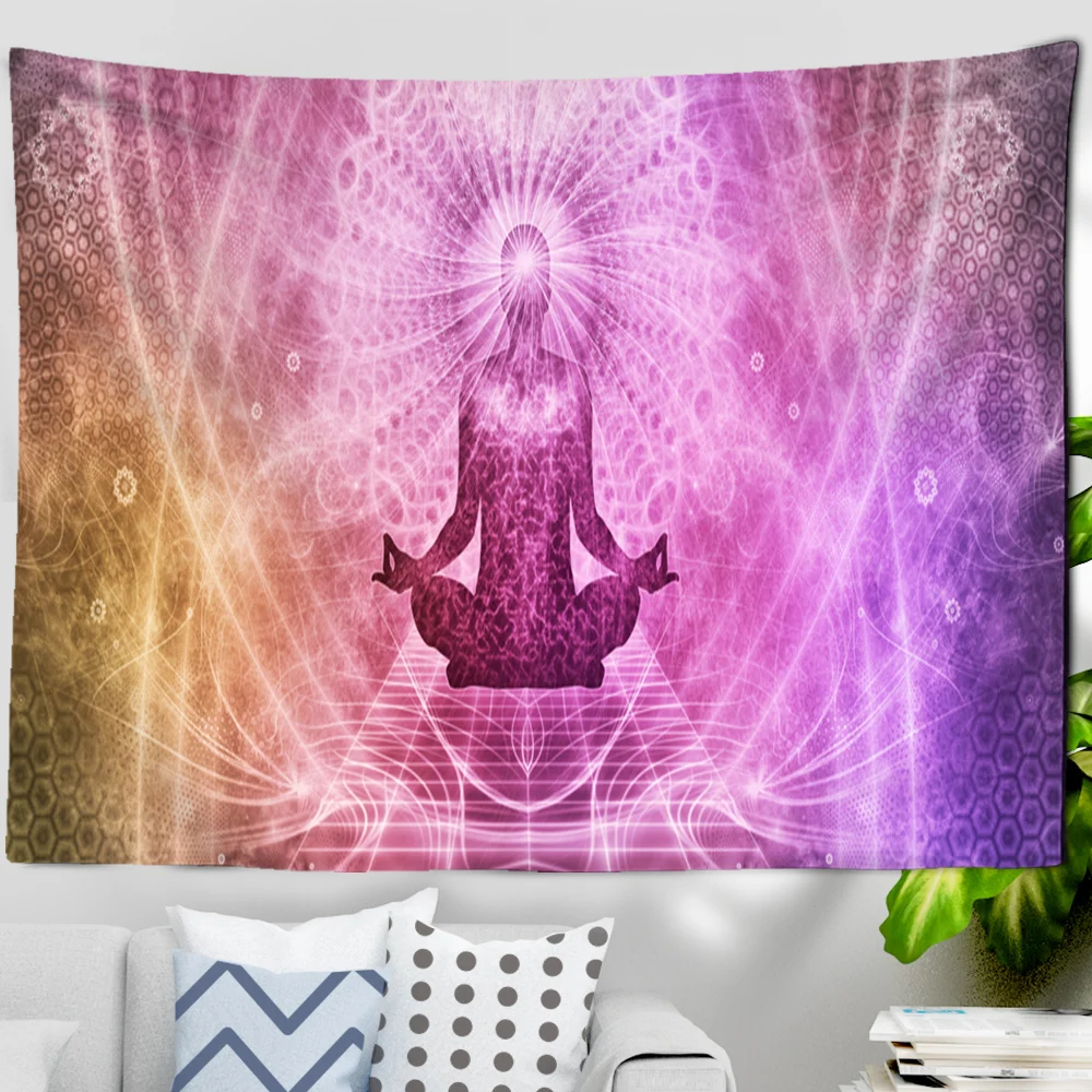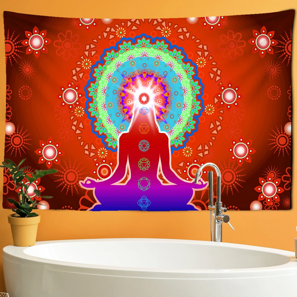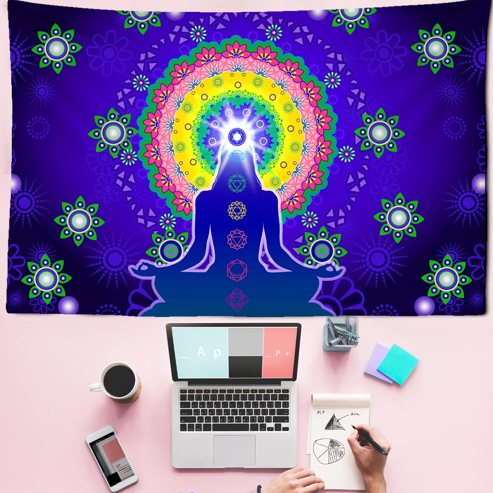 Индийская статуя Будды, гобелен для медитации, 7 чакр, настенный гобелен с мандалой, настенная ткань, психоделическая Йога, Настенная подвеска