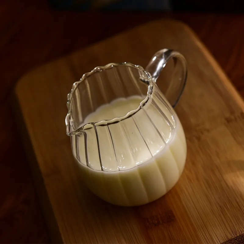 Японский стеклянный молочный кувшин в полоску, термостойкая чашка, сепаратор для кофе, молока, чая, прозрачный кувшин для взбивания молока с ручкой #