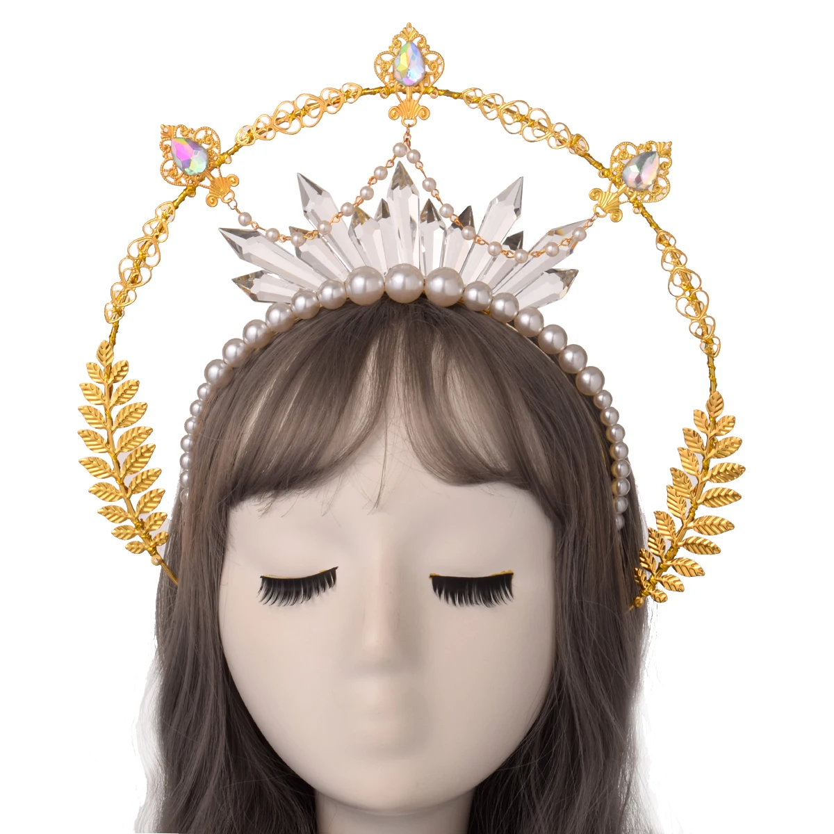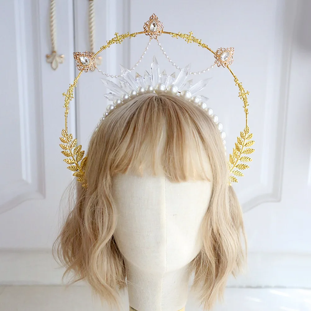 Лолита головной убор Золотой Halo Корона повязка на голову ручной работы вечерние Косплэй аксессуар