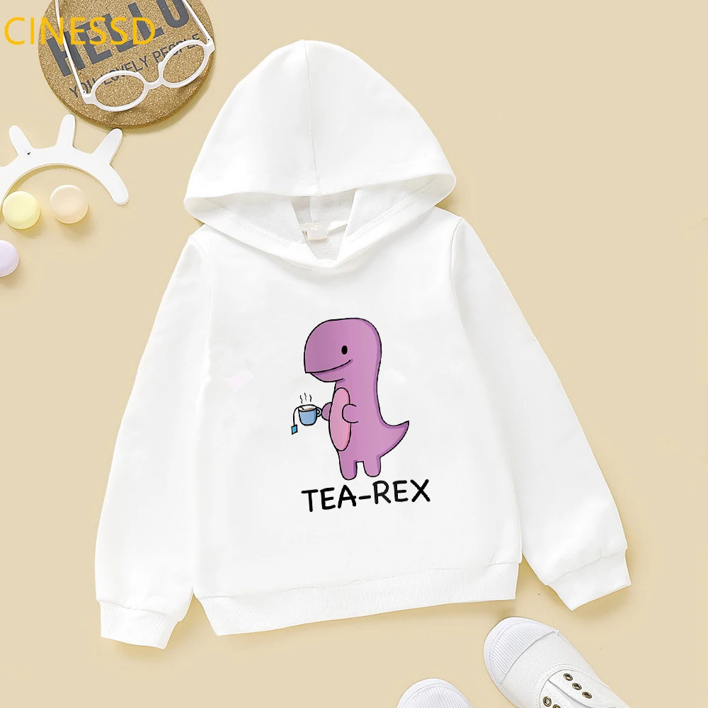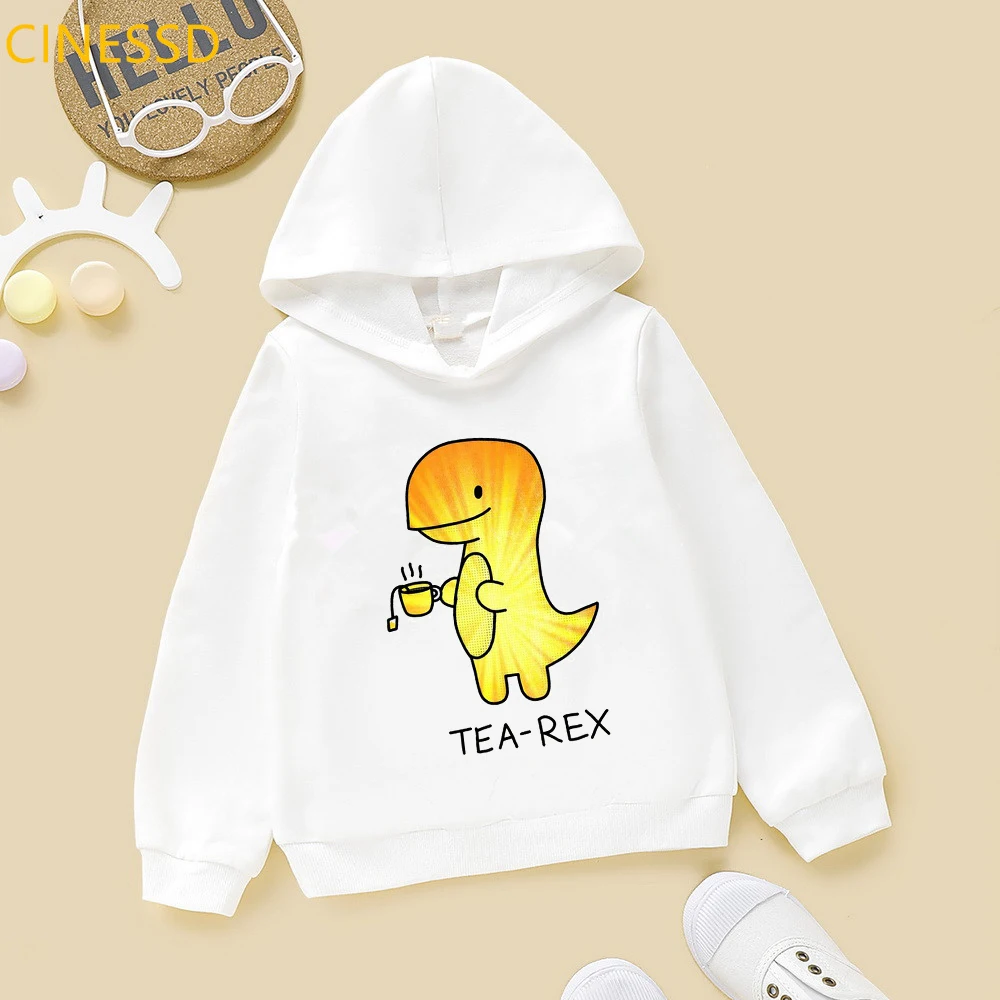 Чай-Rex в парк развлечений, с проектом динозавра из мультфильма, свитшот с рисунком, круглый воротник, длинные рукава для девочекДетская одежда; Одежда для мальчиков Harajuku Kawaii толстовка с рисунком комплекты зимней одежды для детей, толстовки с капюшоном