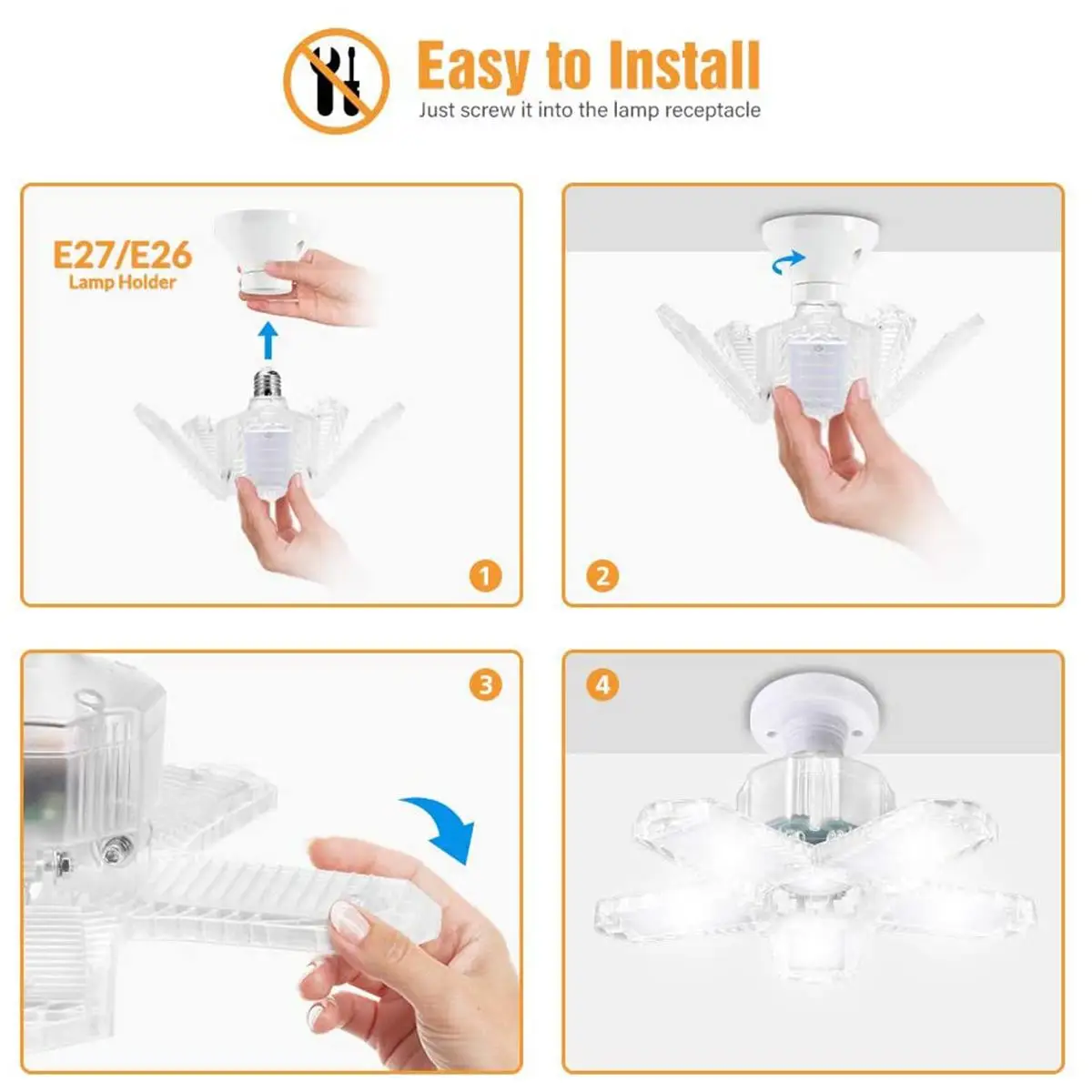 Характеристики:Напряжение: AC85-265VРазъем: E27Источник светильник: 2835 светодиодовЦветовая температура: белый светильник 6500KСветовой поток: 10000 лмРегулируемый угол: ДаМатериал корпуса: пластикРазмер в открытом виде: ок. 258*120 ммЦвет: черный/прозрачныйОсобенности:-Премиум-Материал: Он изготовлен из поликарбоната с высокой пропускной способностью, который отличается яркостью, мягкостью светильник щении, стабильностью и долговечностью.-Регулируемый Угол освещения: каждый блок освещения может быть отрегулирован на 90 градусов, чтобы угол освещения и площадь можно было отрегулировать по вашему желанию. Это позволяет более эффективному освещению достигать рабочей зоны, и таким образом, может быть достигнута высокая эффективность освещения светодиодный ных ламп.-Энергосбережение и длительный срок службы: высококачественные 2835 светодиодов, Энергоэффективные. Индекс цветопередачи выше 80, что восстанавливает истинный цвет объекта; Слабое затухание света и длительный срок службы.-Широкое Применение: используется как светильник, низкие/Высокие потолочные лампы s светодиодный ные рабосветильник пы s светодиодный ные лампы. Отличная альтернатива традиционным флуоресцентным лампам для гаражей, подвалов, магазинов, мастерских, общественных объектов, помещений отдыха, складов, баров, помещений оборудования и других промышленных рабочих пространств с подсветкой большой площади.-Простота установки: патрон лампы Е27, и он легко устанавливается; Без каких-либо инструментов, проводки и профессионального электрика.