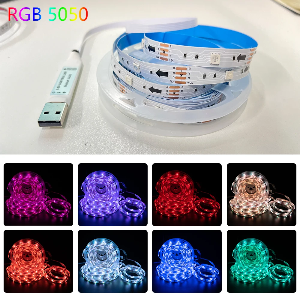 Светодиодная ленсветильник 5 в постоянного тока SMD 2835, гибкая лампа 1 м, 2 м, 3 м, 4 м, 5 м, лента с диодами для настольного экрана, фосветильник освещения телевизора, USB-кабель с 3 кнопками управления