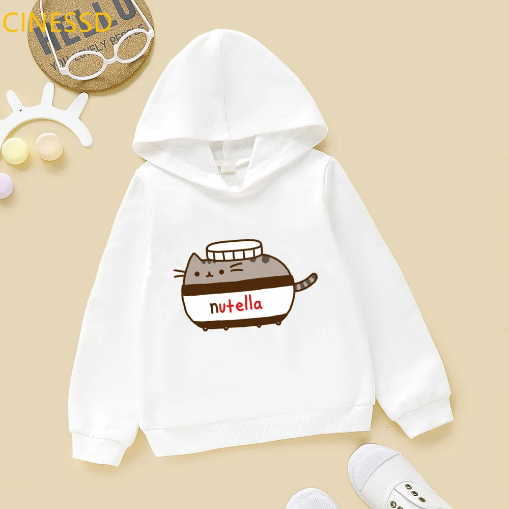 Толстовка детская с мультяшным принтом кота Nutella, забавная Толстовка для девочекмальчиков, кавайная зимняя детская одежда в стиле Харадзюку, пальто