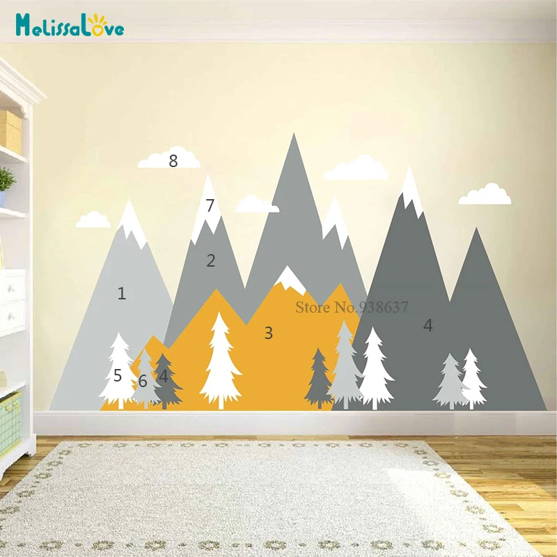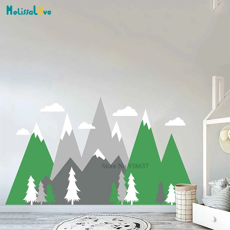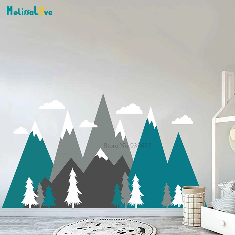 Скандинавский стиль, горы, настенные наклейки, детская комната, игр...