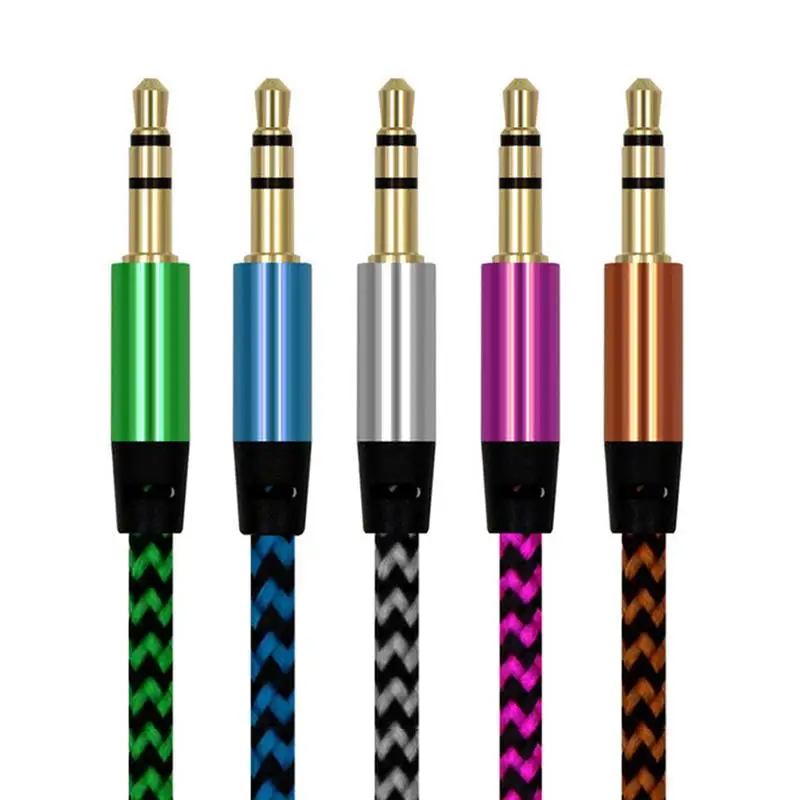 3,5 мм Автомобильный Кабель Aux аудио кабель Шнур для автомобильных наушников MP3 ПК для Andriod Aux кабель для музыки и видео цветной нейлоновый Плетеный аудио кабель