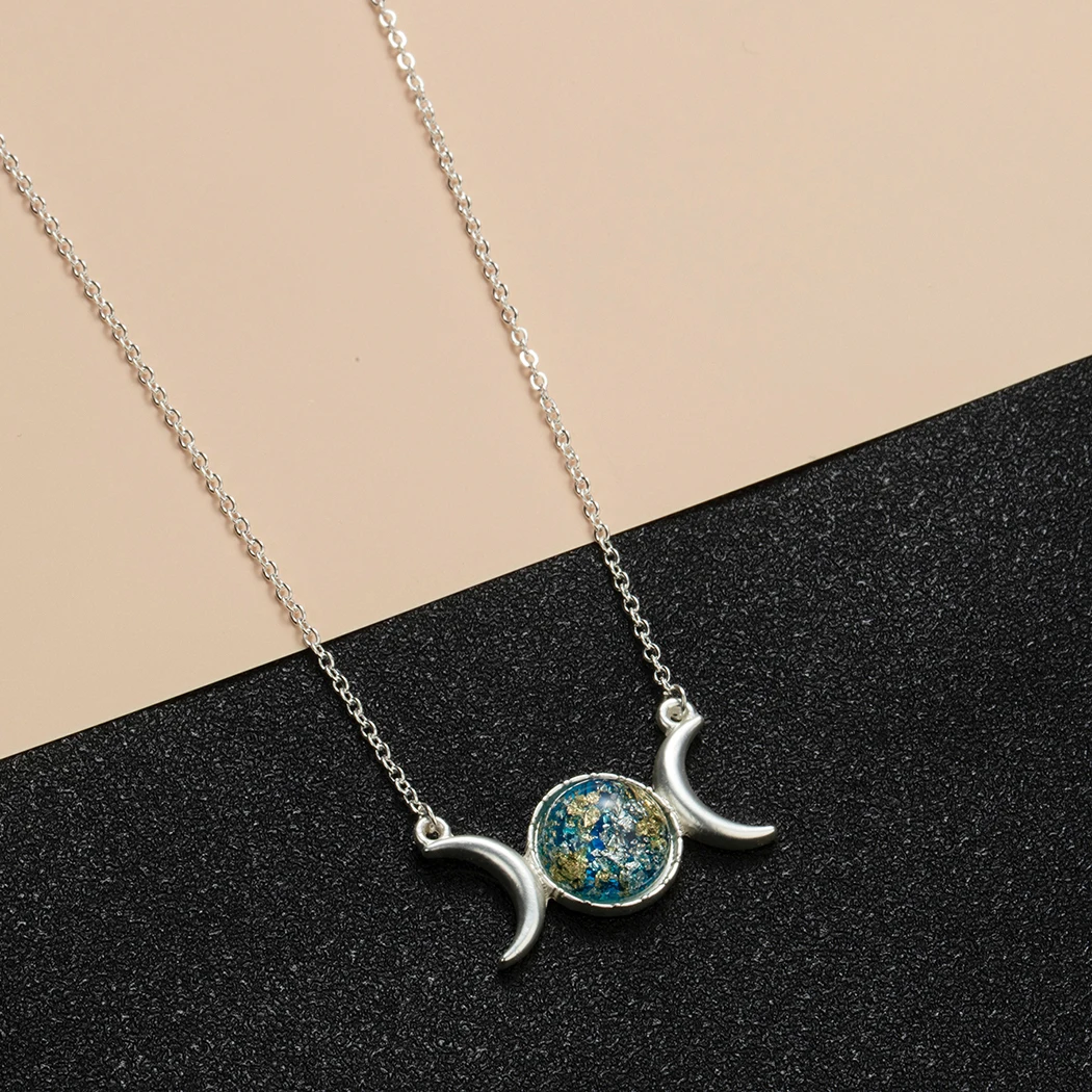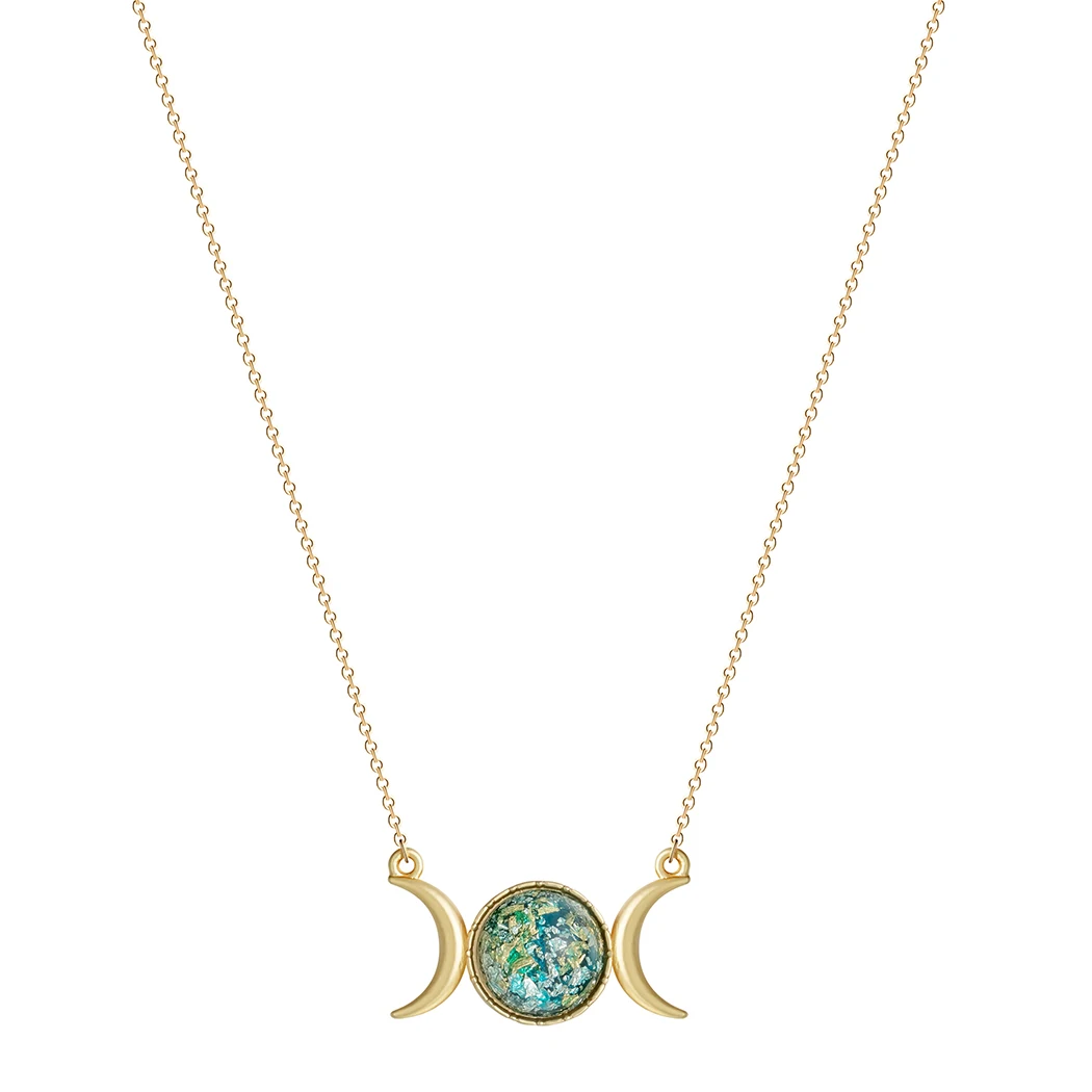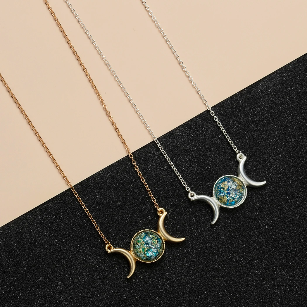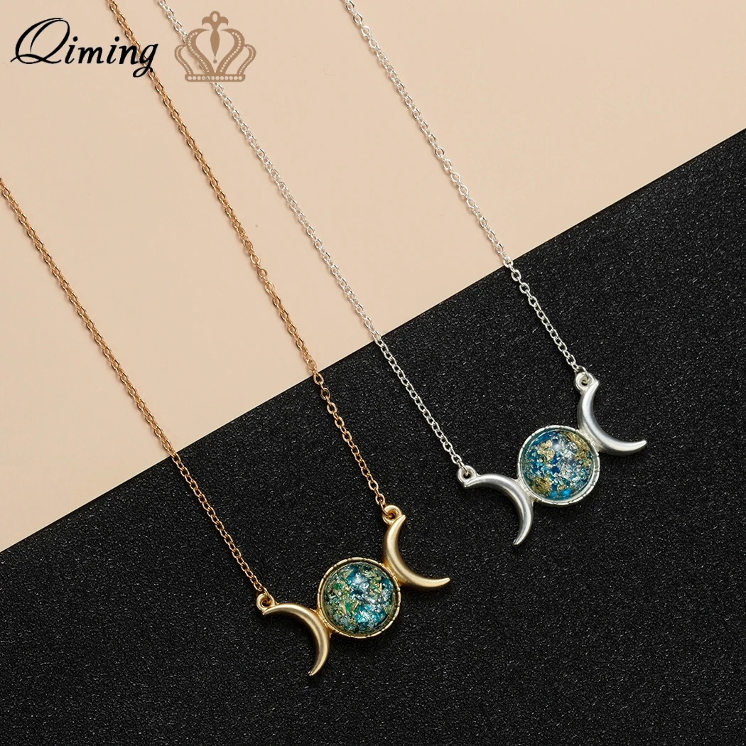QIMING Тройная Луна ожерельлье богини для женщин Хрустальный Камень круглые цепи земля очаровательное Полумесяце