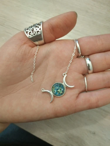 Красивый кулон. Цепочка нежно смотрится. Выглядит загадочно и магически. Все очень аккуратно. Я довольна. Благодарю.