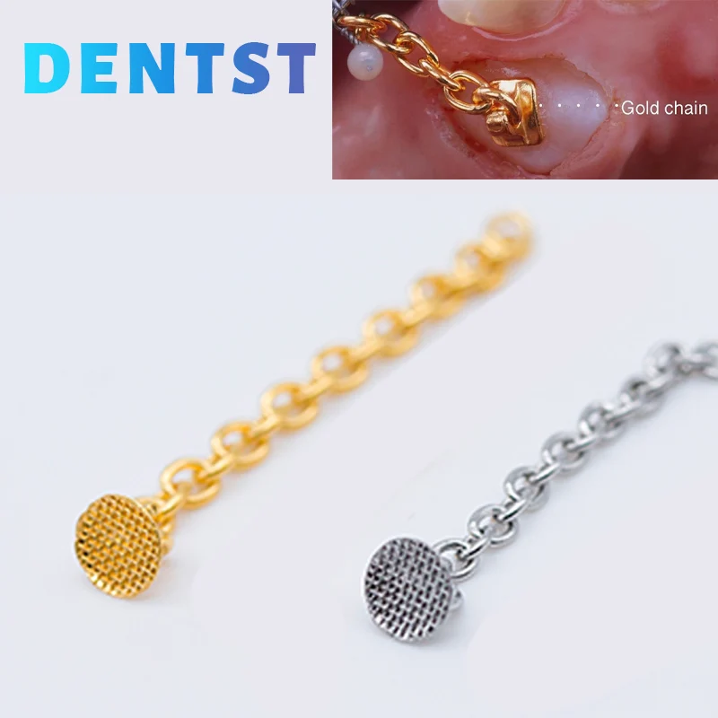 Dentst 2 шт. Ортодонтическая Стоматологическая Золотая Серебряная цепочка для пуговиц + круглая основа, блестящий крючок для сцепления с прямым сцеплением