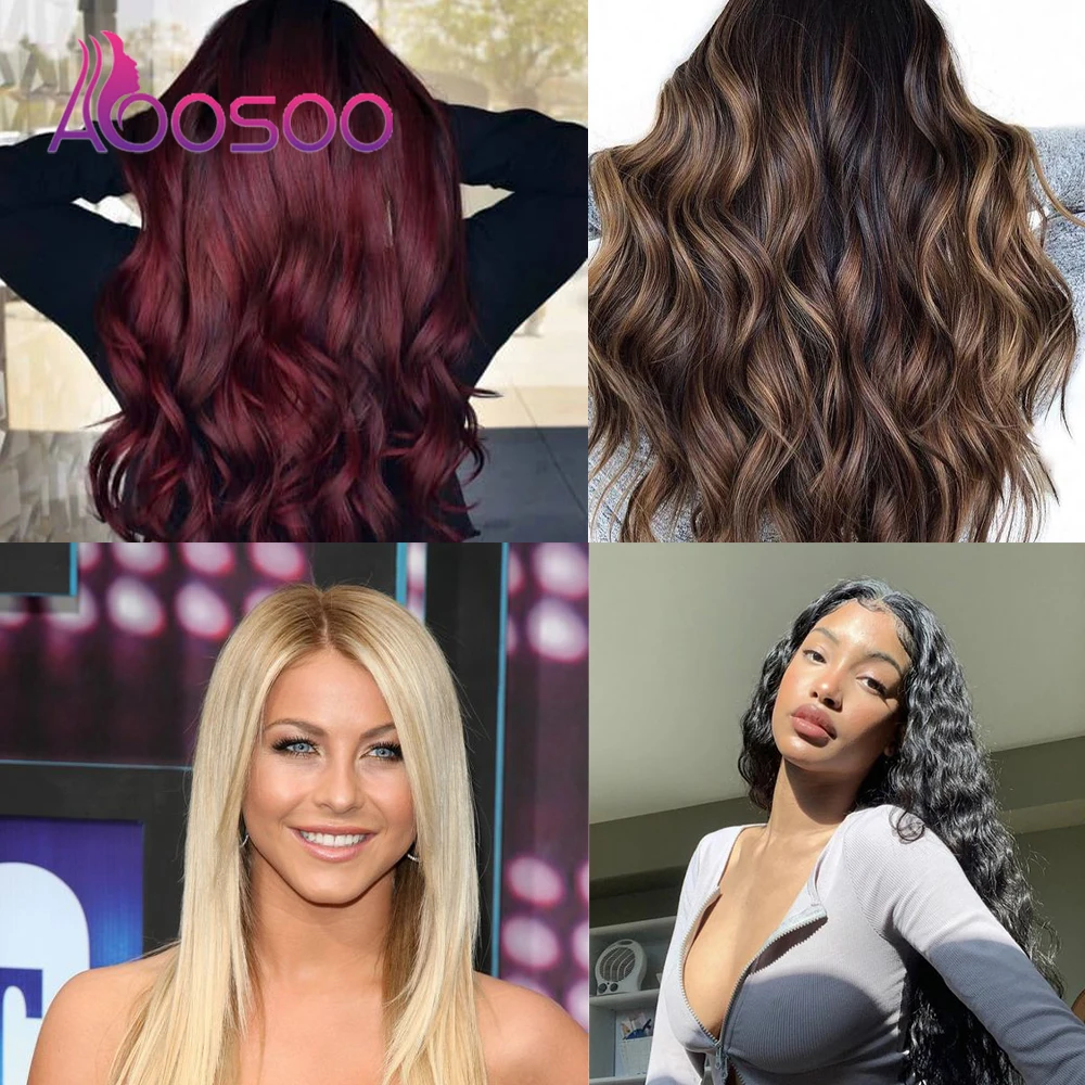 AOOSOO без зажима волнистые волосы для наращивания с эффектом омбре синтетический натуральный черный светлый розовый парик Волнистые невидимые волосы для рыболовной лески