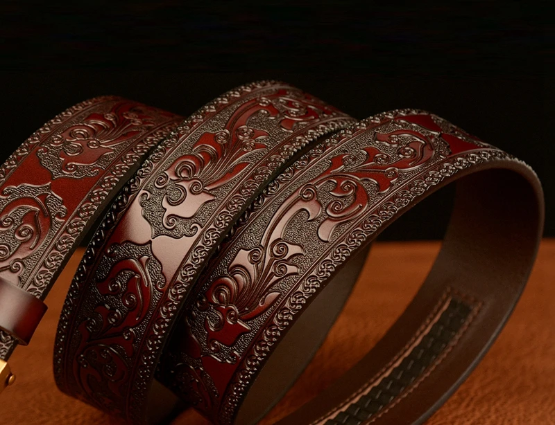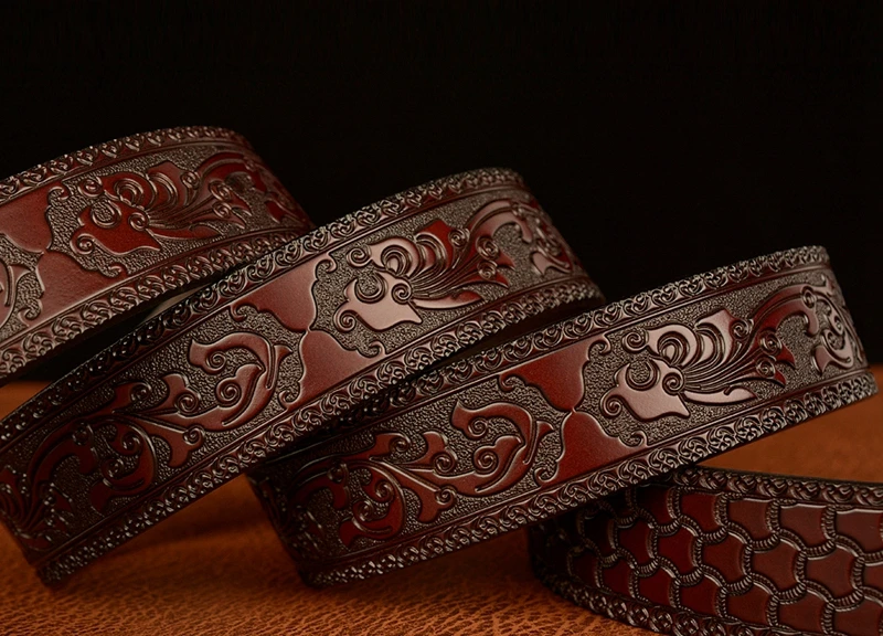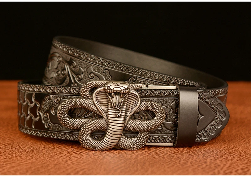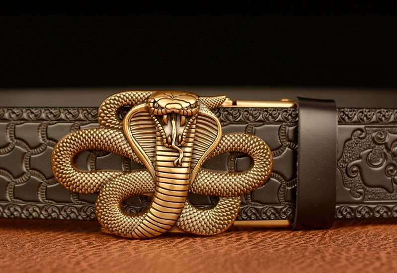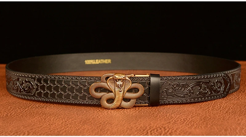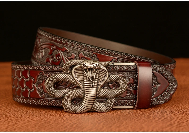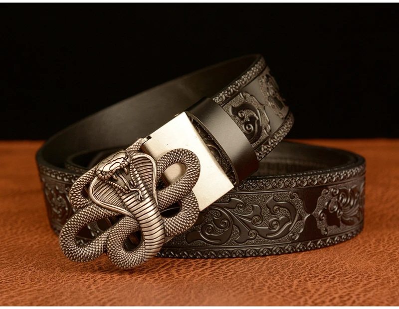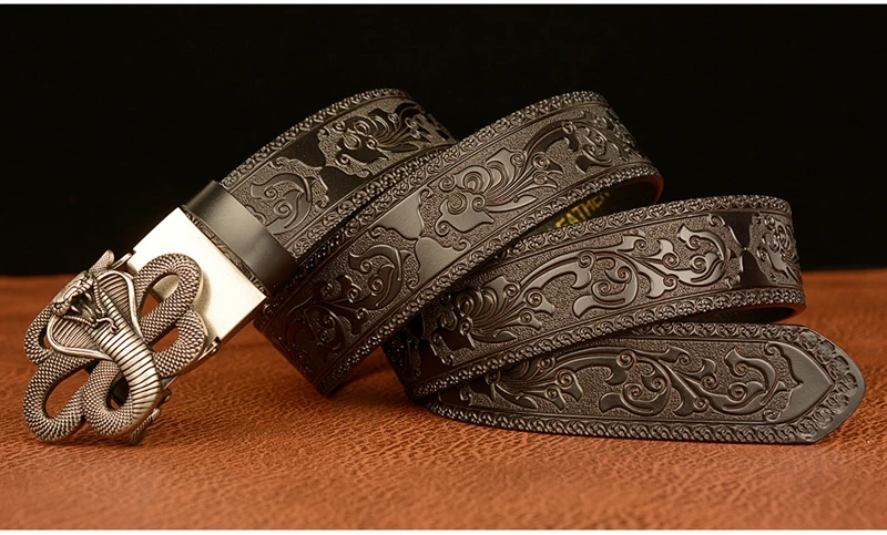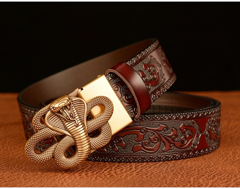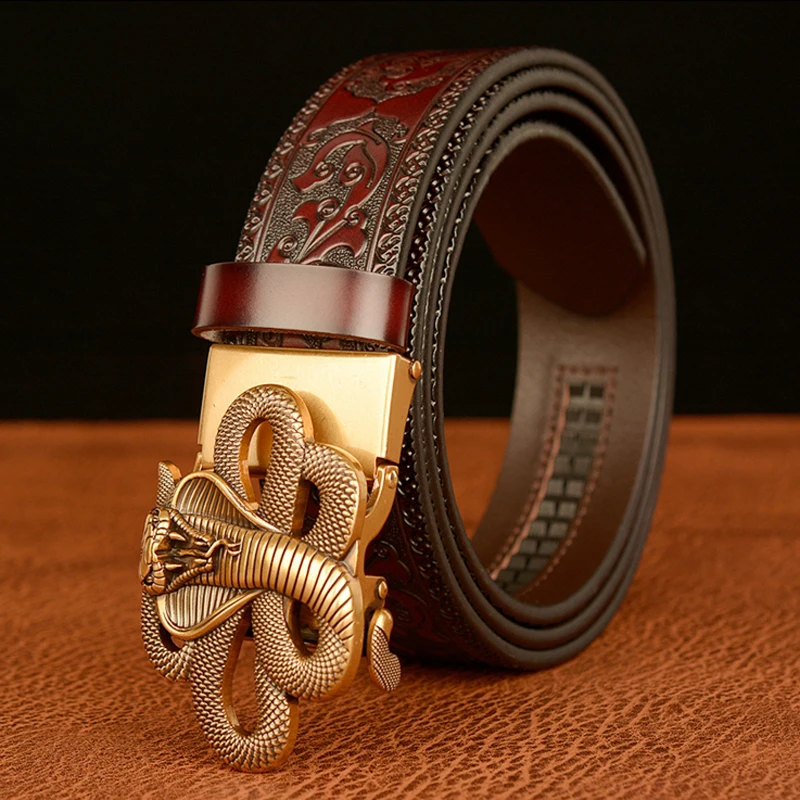Ремень мужской с автоматической пряжкой в форме змеи, ремень из натуральной воловьей кожи в стиле ретро, с рисунком травы Тан, подарок для талии
