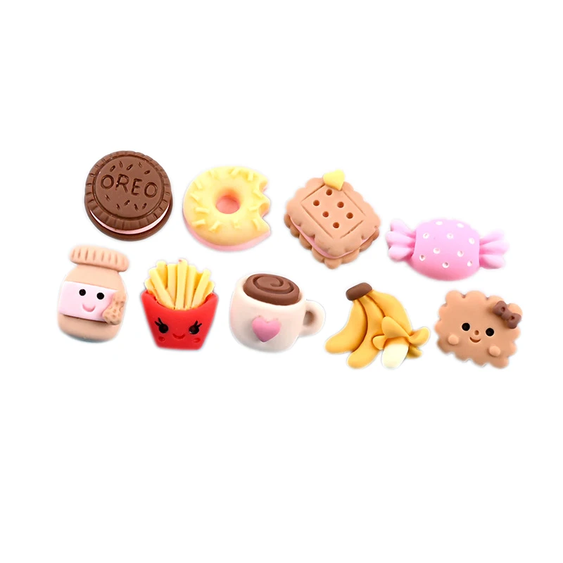 20 -100 шт., Мультяшные полимерные миниатюры-чипсы, пончики, печенье, сделай сам, Крафтовая брошь для скрапбукинга, нашивка в виде ракушки телефона, пищевые игрушки, аксессуары