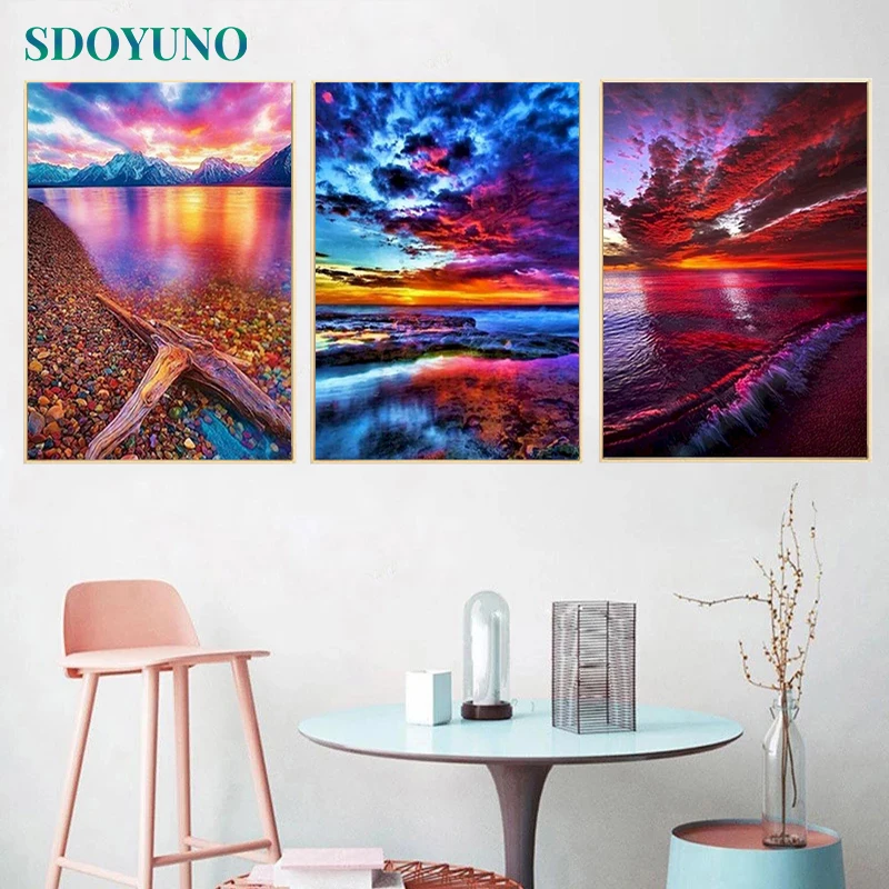 SDOYUNO 3 шт. 40 х0 см краска по номерам для взрослых пейзаж DIY Краска по номерам на холсте без рамки пляжная ручная краска