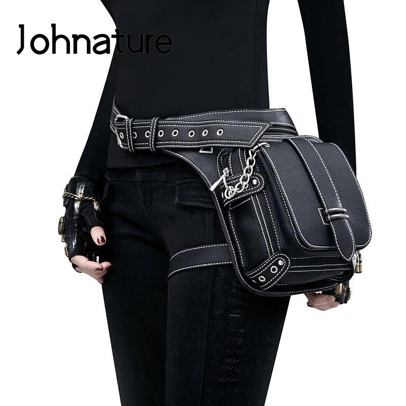 Johnature, панк, Ретро стиль, женская поясная сумка 2021 высокого качества; Искусственная ПУ-кожа к повседневной одежде многофункциональные мото байкерские мобильный телефон сумки