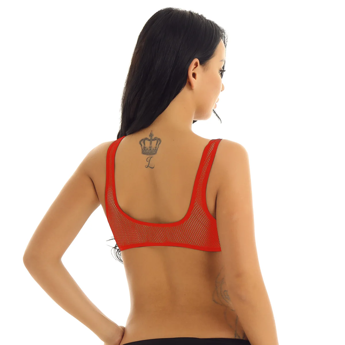 Женское нижнее белье, прозрачная ажурная сетчатая майка с широкими бретельками и глубоким U-образным вырезом, укороченный топ, прозрачный бюстгальтер, Топ