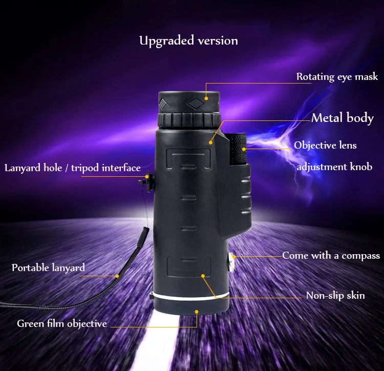 Монокуляр 40x60, водонепроницаемый, с функцией ночного видения, при...