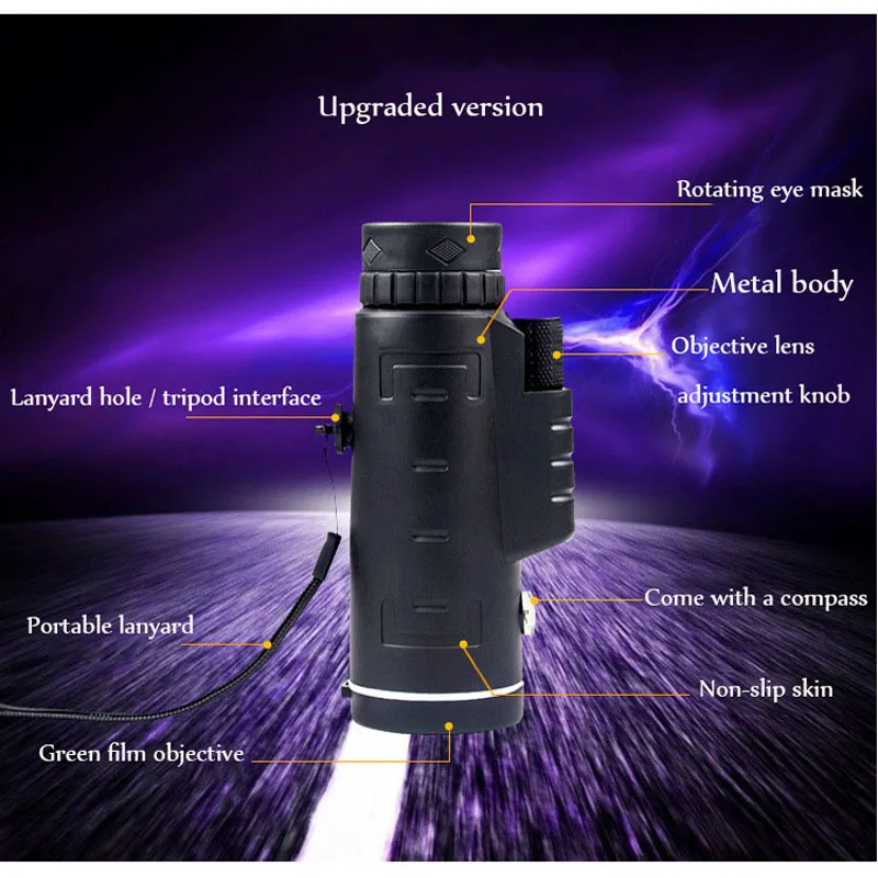 Монокулярный телескоп 40x60, водонепроницаемый, с функцией ночного ...