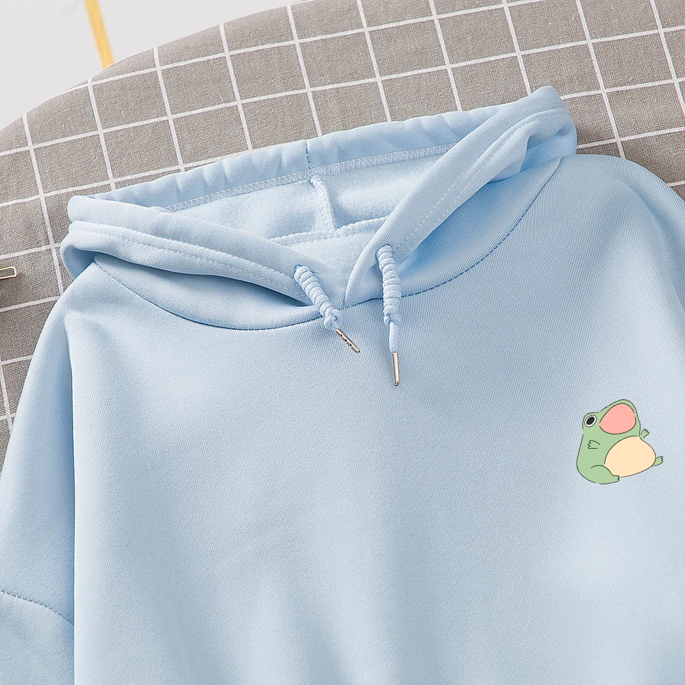 Женские свободные уличные теплые свитера большого размера, милые толстовки с рисунком лягушки, женские толстовки с капюшоном, универсальные повседневные пуловеры в Корейском стиле Стиль: Повседневный,Вес: 450 г
