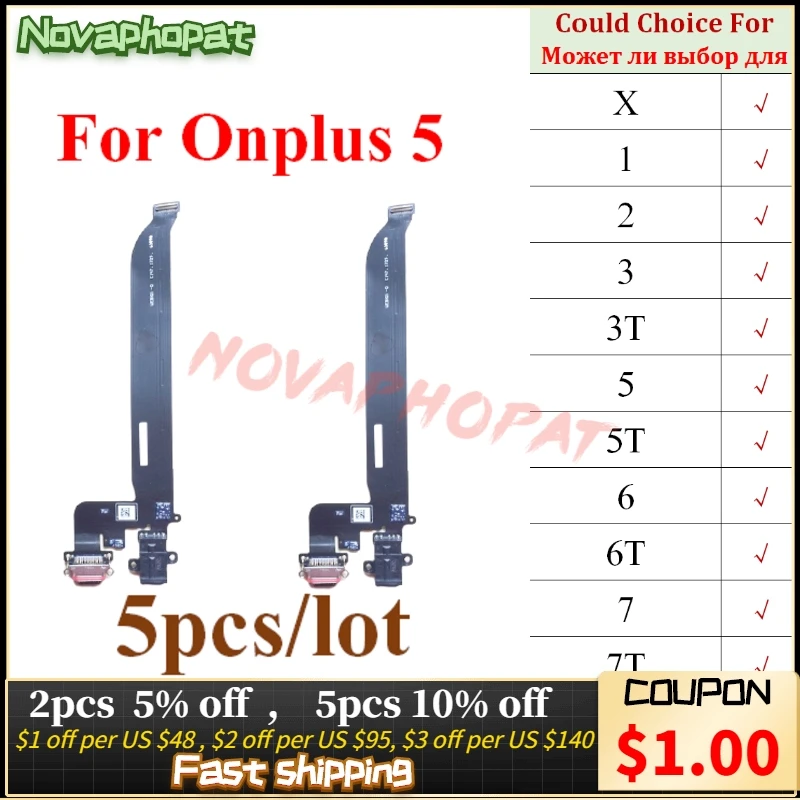 USB-разъем Novaphopat для Oneplus 1 + 5 A5000 5T A5010 X 2 3 3T 6 6T 7 7T, 5 шт.лот