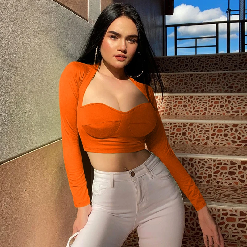 LVINMW однотонный повседневный модный топ с квадратным воротником и длинным рукавом, женские лоскутные обтягивающие сексуальные короткие топы, осенняя уличная одежда