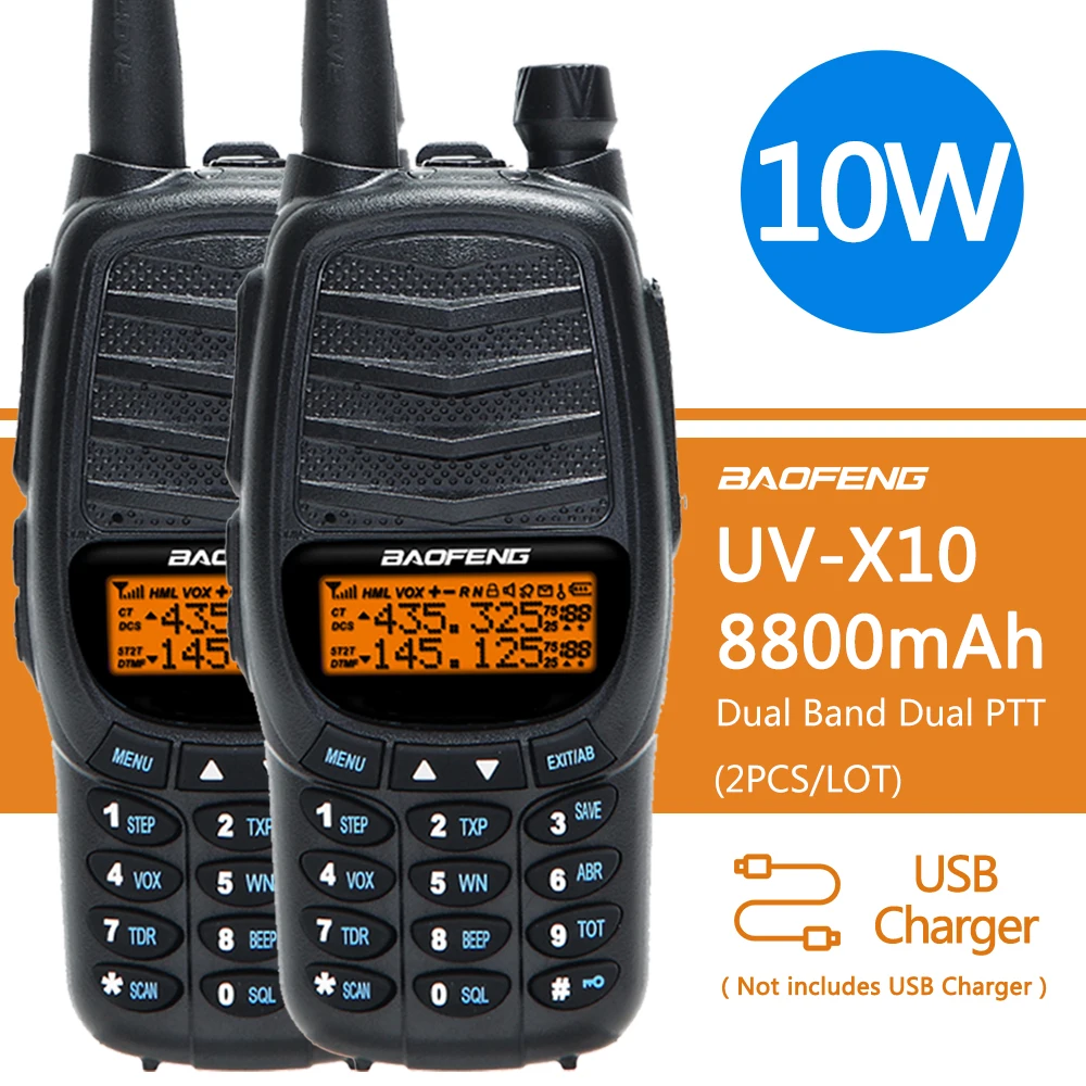 Новый, 2 предмета Baofeng UV-X10 радио 10 Вт Powful иди и болтай Walkie Talkie иди и 2-PTT двухдиапазонный УКВ 128 Каналы CB двухстороннее радио обновление UV-5R UV-82