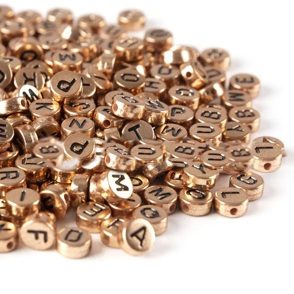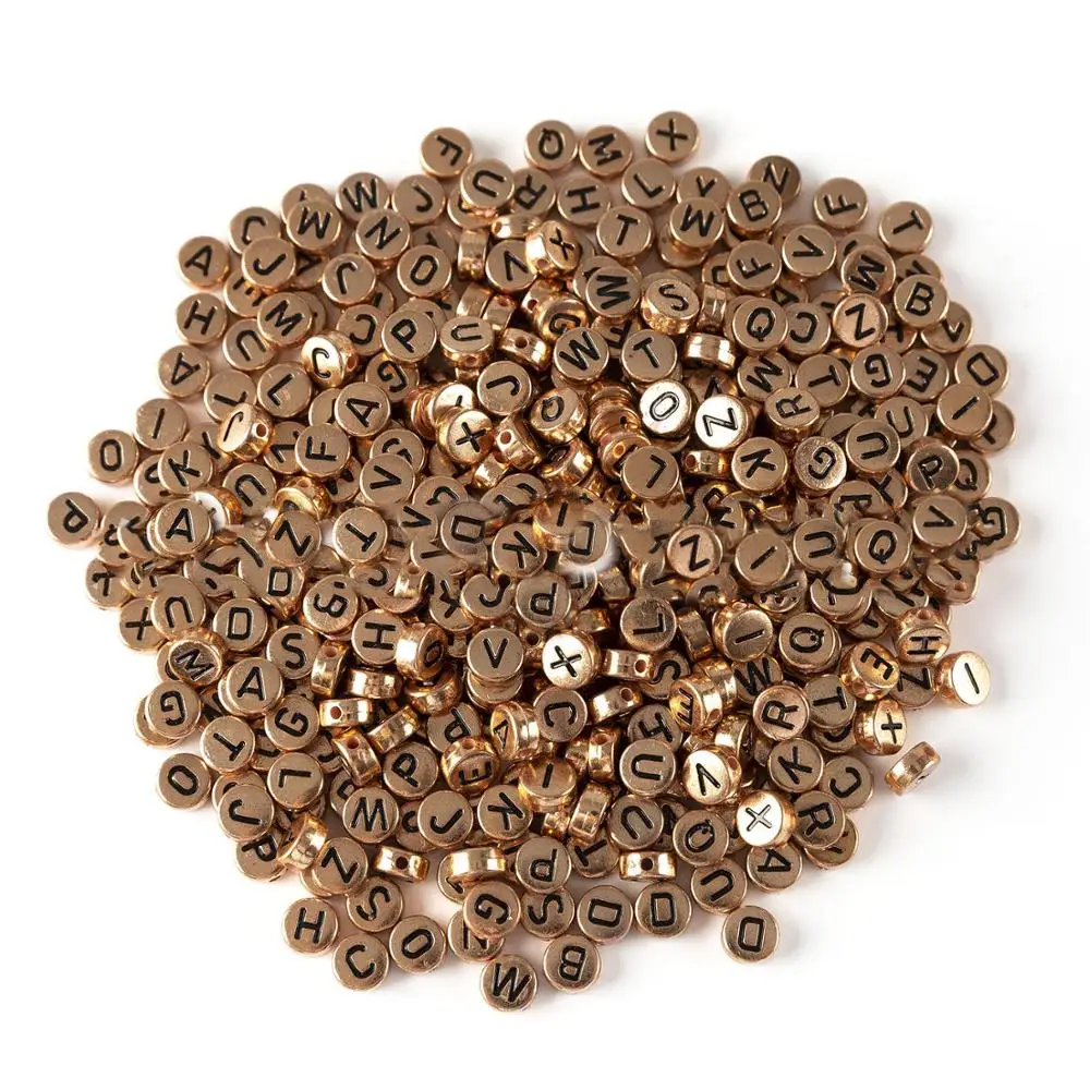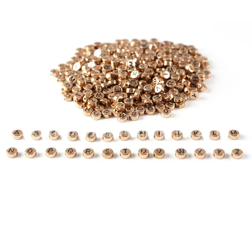Розовое золото Цвет круглые акриловые серебряные украшения в виде букв из 4*7 мм без каблука монета Форма 3600 шт. из серии "сделай сам", ювелирные изделия разделитель браслета Алфавит Первоначальный