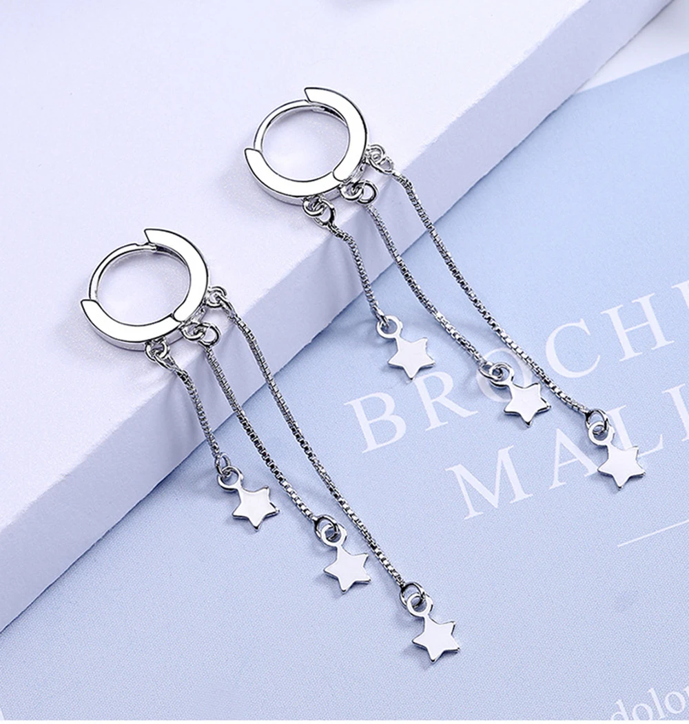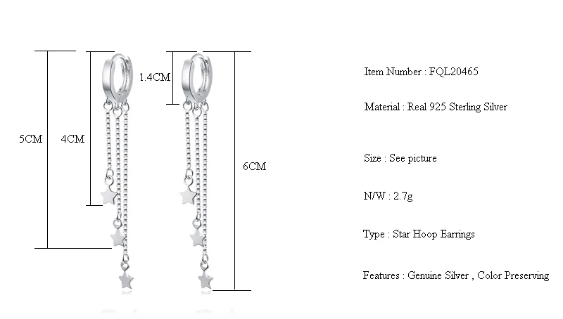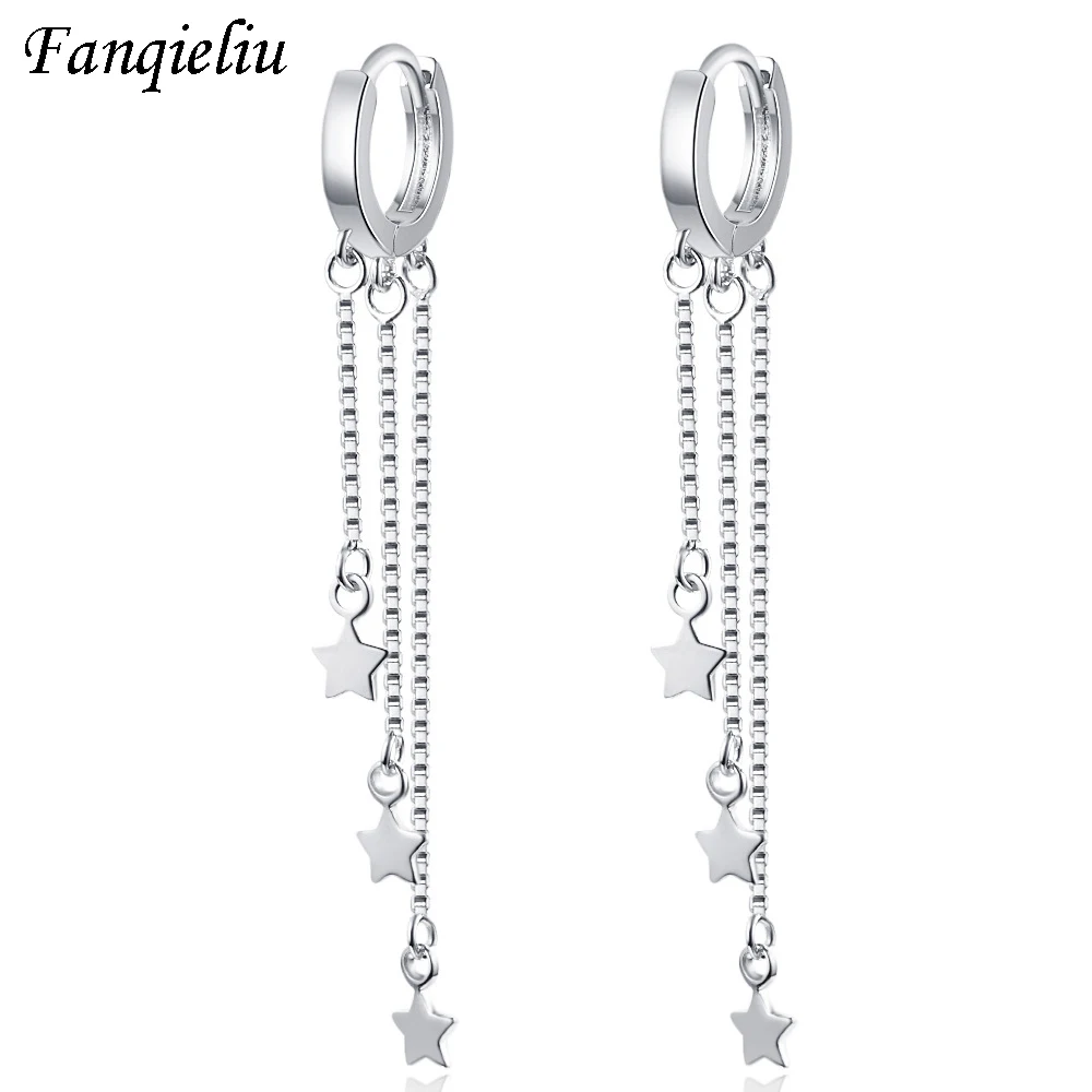 Женские длинные серьги-кольца Fanqieliu, Подарочные ювелирные украшения из стерлингового серебра 925 пробы с подвеской в виде звезды, 3 шт. в коробке, FQL20465