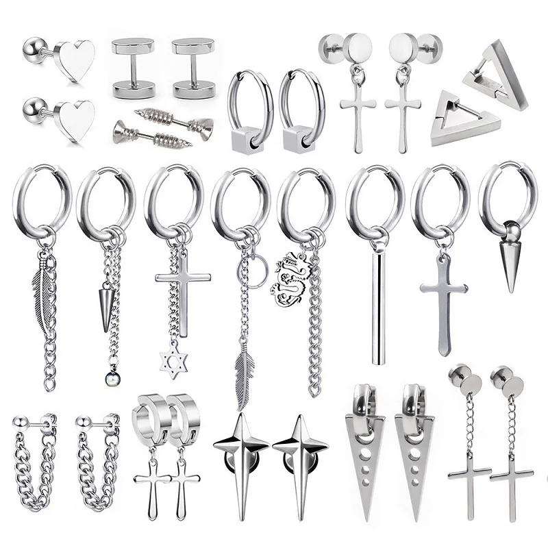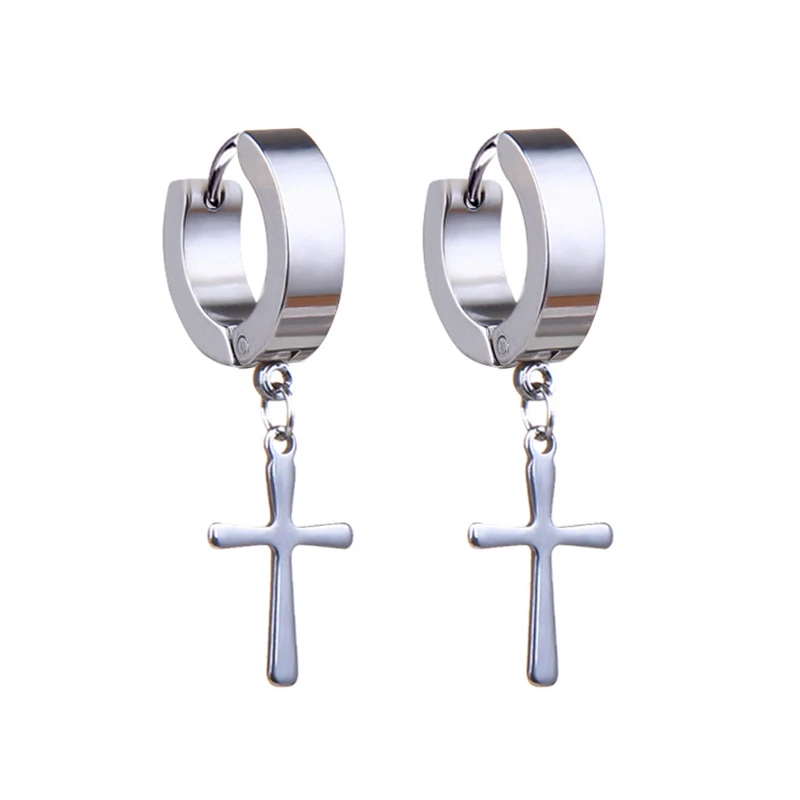 Серьги-гвоздики унисекс, из нержавеющей стали, с подвеской в виде креста, 1 пара