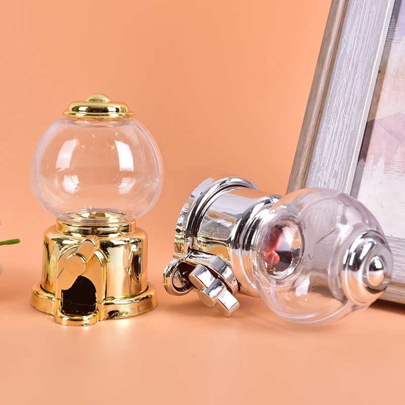 Особенности:Подходит для гамбала, арахиса, небольших конфет и закусок.Также может использоваться в качестве банка для монет.Распределяет небольшие gumballs, конфеты, или орехиПодходит для детей 3 + летГамбол и конфеты в комплект не входят.Тип: машина для конфетЦвет: серебристый, золотойРазмер: 10 см x 6 смВес: 48 гМатериал: пластикПосылка включает в себя: 1 машина для конфет (Другая вещь не входит в комплект)