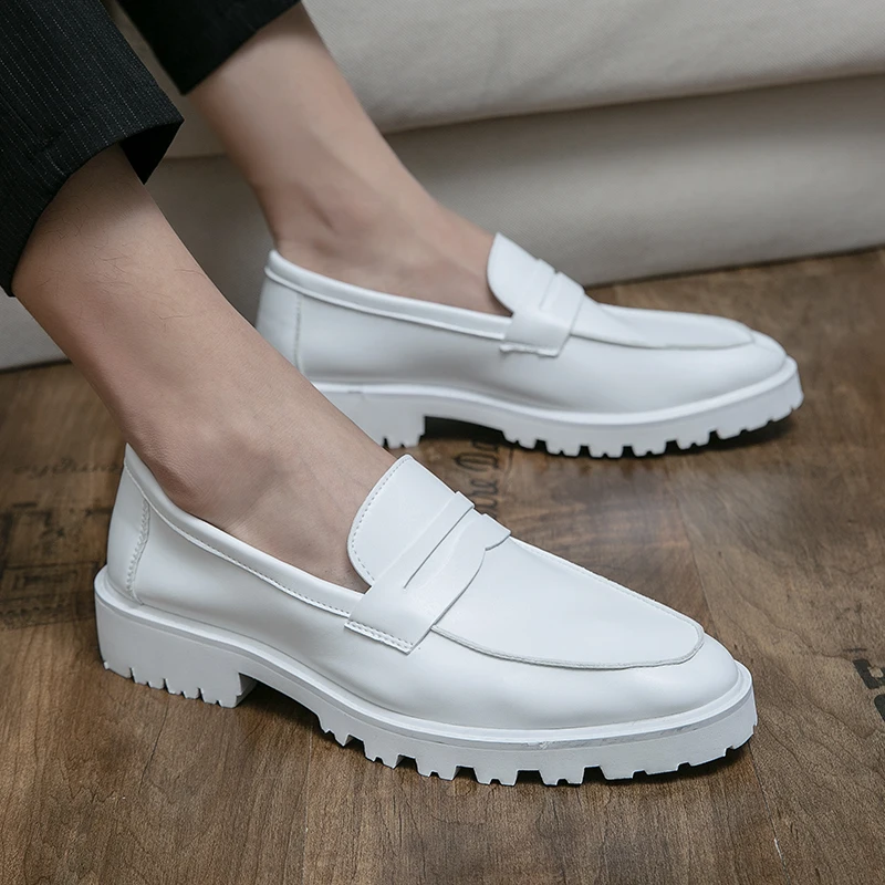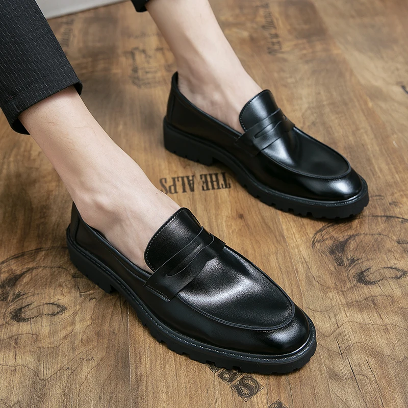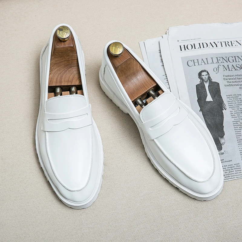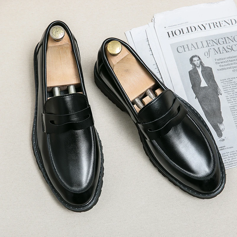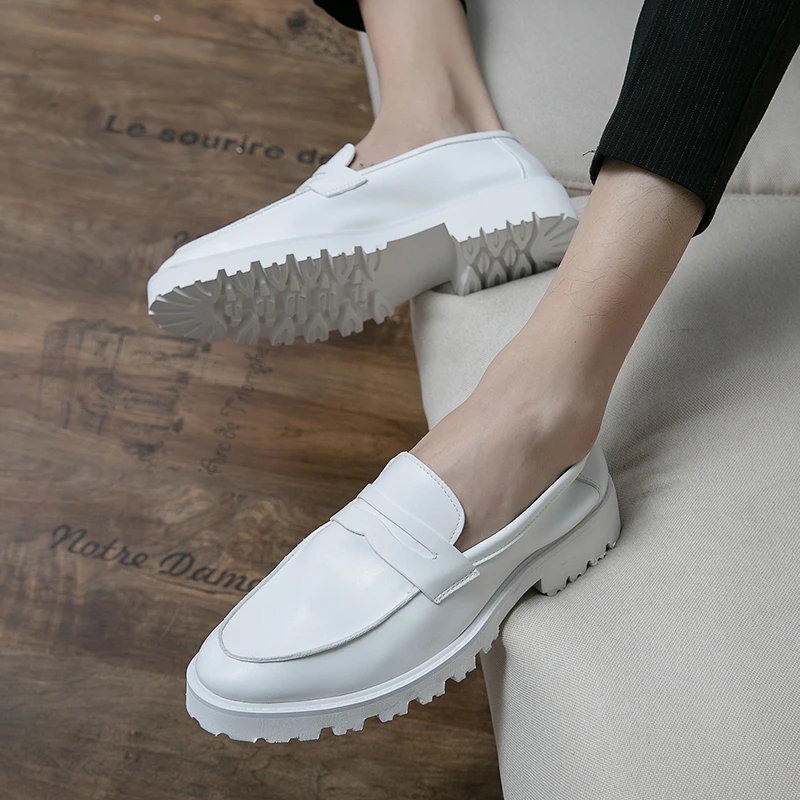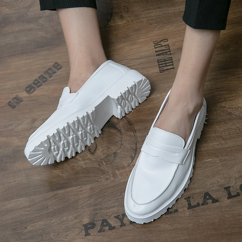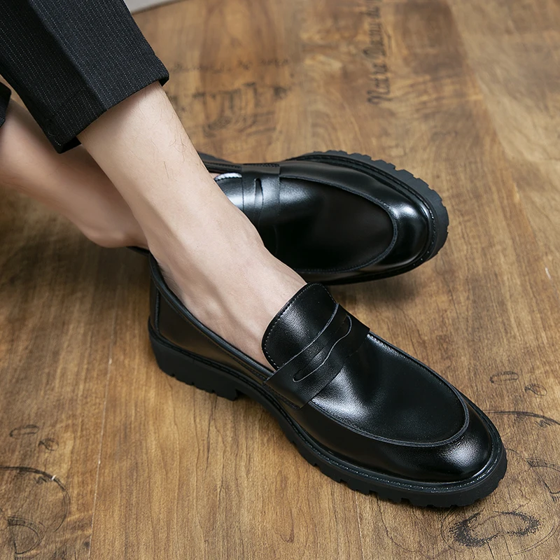 Туфли мужские кожаные без застежки, лоферы на платформе, Повседневн...