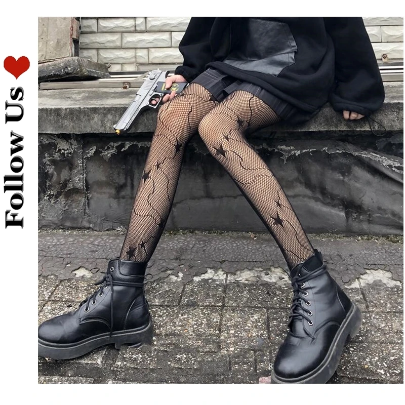2021 женские сексуальные черные сетчатые чулки с пятиконечной звездой колготки в сетку, чулки прозрачные сетчатые колготки с узором с дырками