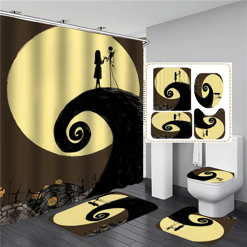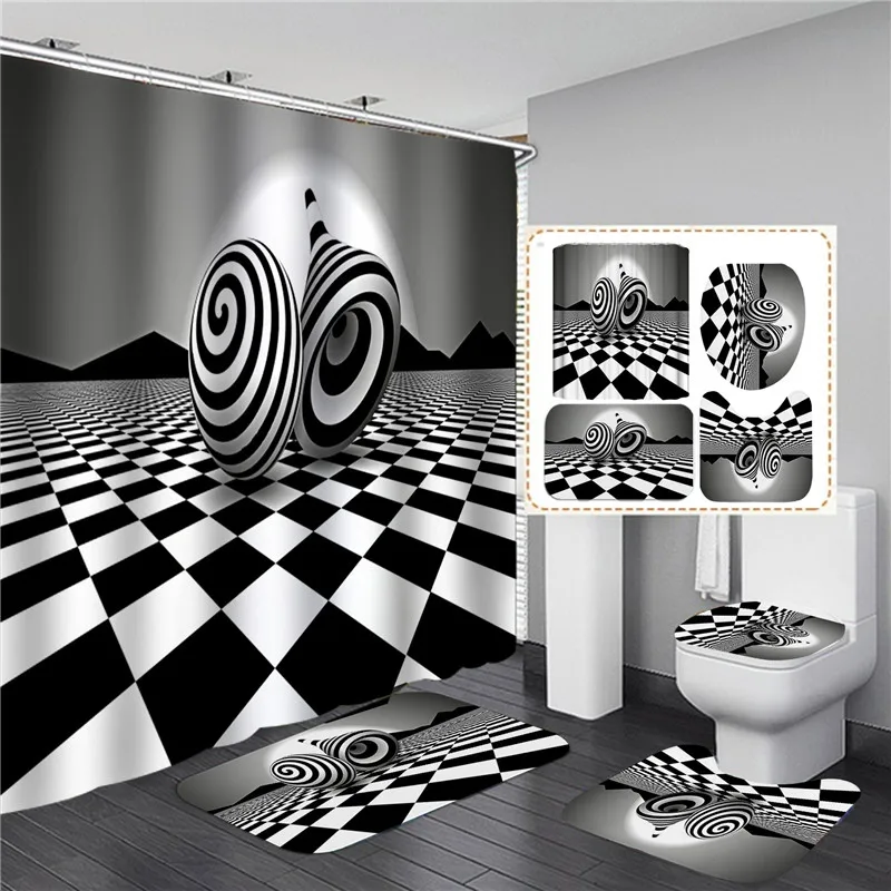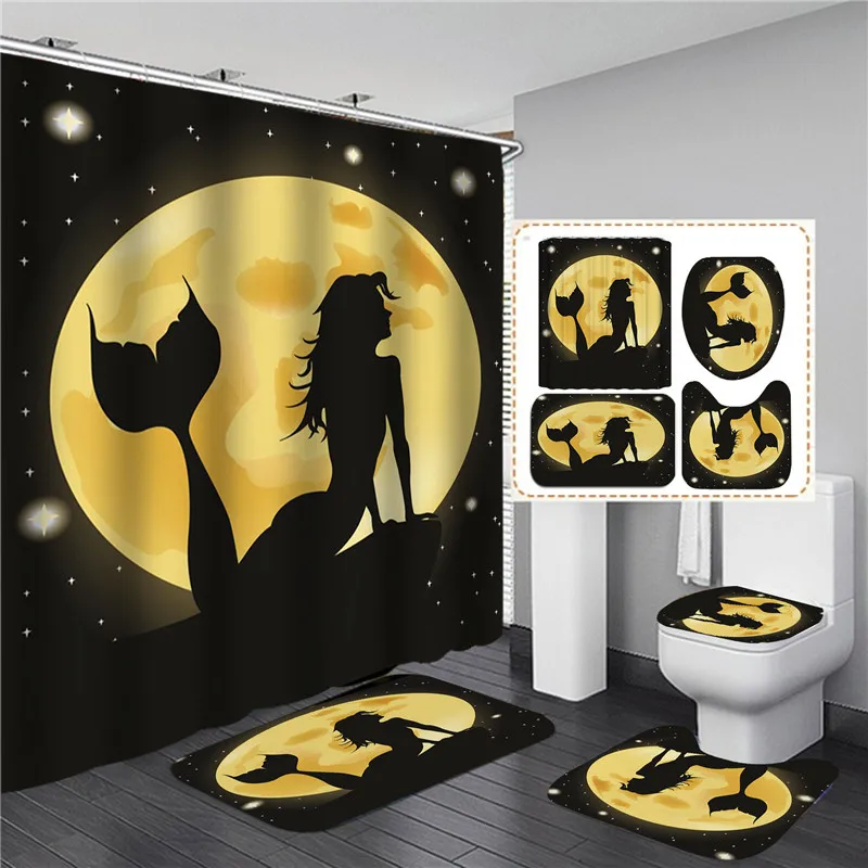 Занавеска для душа из полиэстера с крючками, занавеска с 3D принтом для ванной комнаты, мягкий коврик для ванной, нескользящий ковер, аксессуары для туалета, четыре предмета