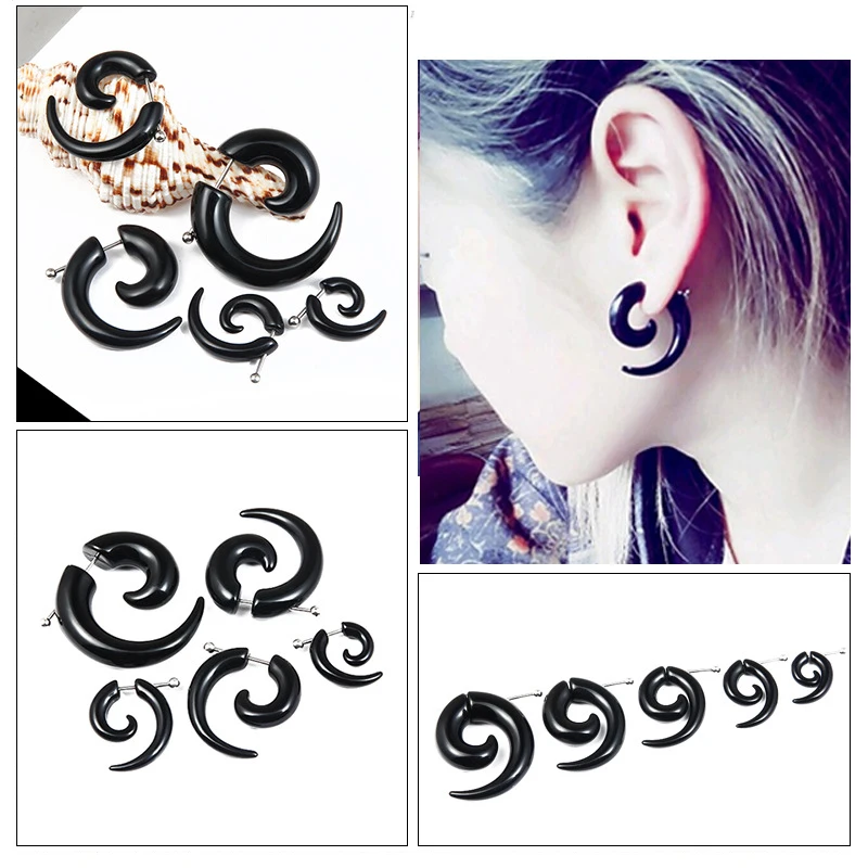 Женскиемужские акриловые серьги в форме рога быка в стиле панк, ювелирное изделие в форме ушной раковины черного цвета, в стиле хип-хоп, рок, вечерняя индивидуальная бижутерия, 1 штука